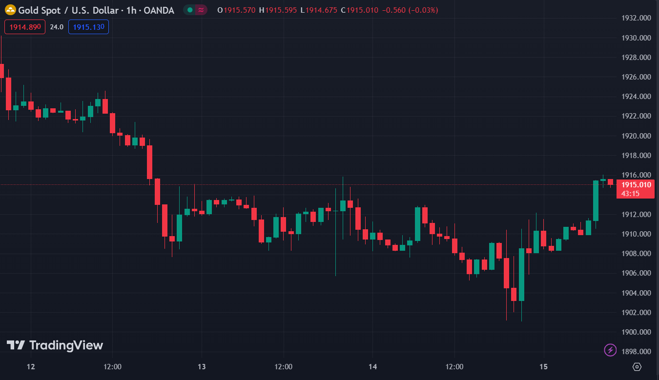 USD/CAD, USD/JPY, EUR/USD, GBP/USD ít thay đổi. Vàng tăng giá và đang giao dịch gần mức $1,915.