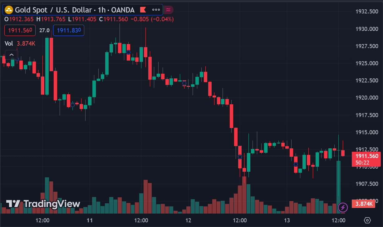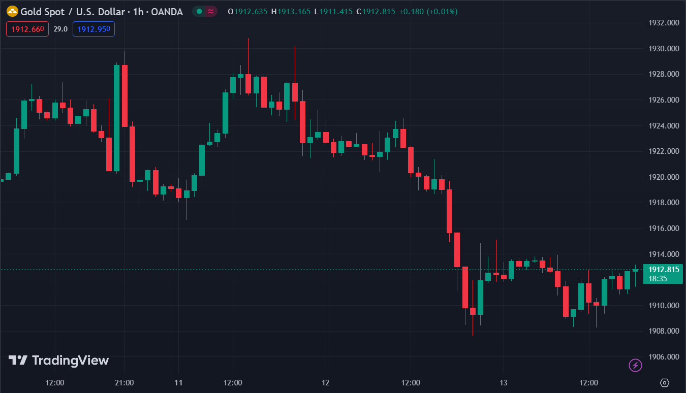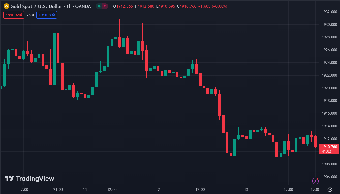 Vàng quét hai đầu sau công bố dữ liệu CPI, kết phiên ở mức $1,908. Dầu giảm sau khi chạm mức đỉnh kể từ tháng 11 do dự trữ dầu thô của Mỹ bất ngờ tăng bù đắp cho kỳ vọng nguồn cung dầu thô thắt chặt trong thời gian còn lại của năm. Dầu thô WTI giảm 6 cent xuống 88.78 USD trong khi dầu thô Brent giảm 13 cent xuống 91.93 USD/thùng. Lợi suất trái phiếu kho bạc đồng loạt giảm với lợi suất trái phiếu kỳ hạn 10 năm giảm 0.1 điểm cơ bản xuống 4.25%.