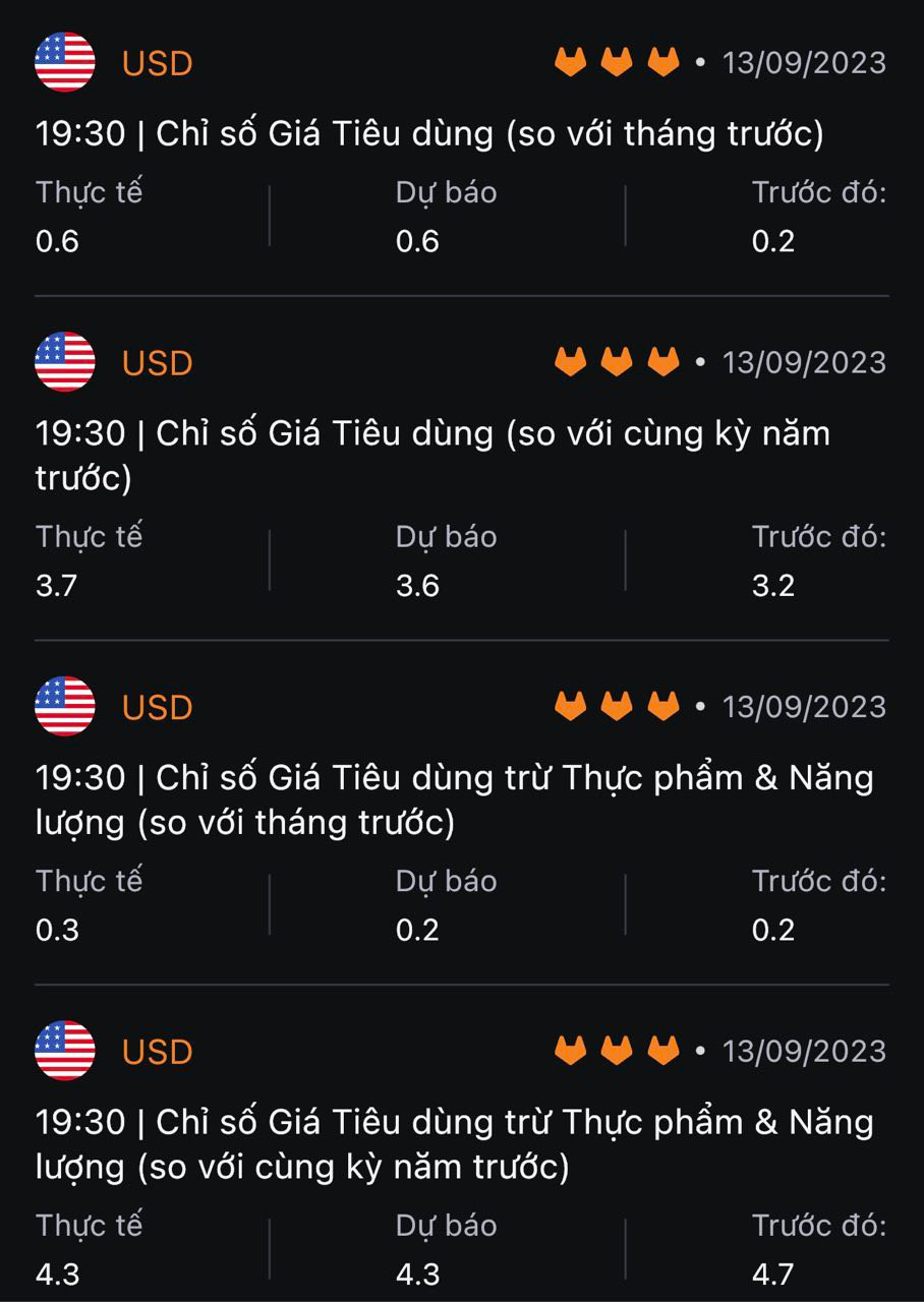 Mọi sự chú ý đổ dồn vào dữ liệu CPI của Mỹ được công bố lúc 19:30 hôm nay.