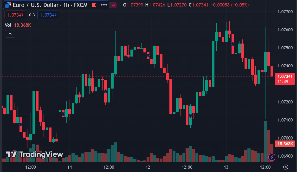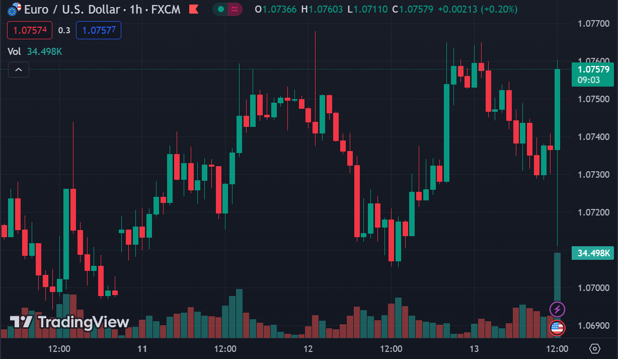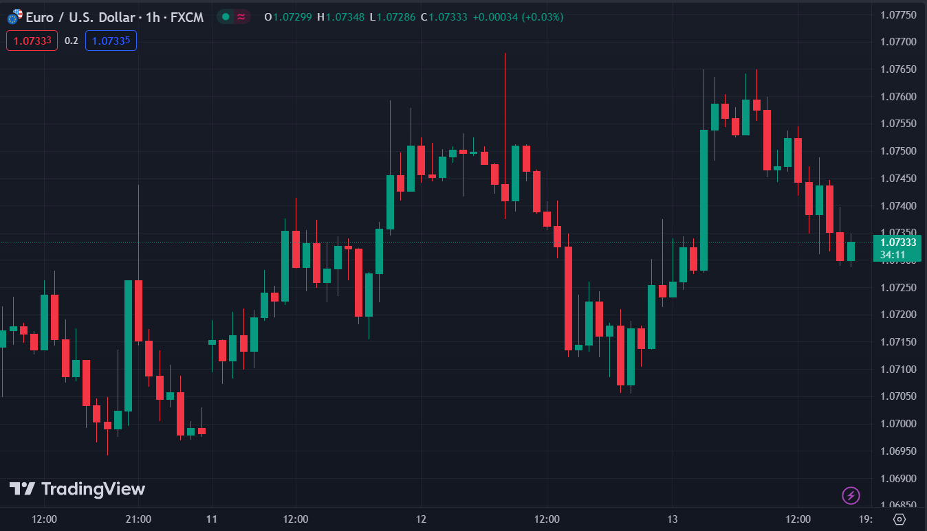 EUR/USD giảm 0.19% trong ngày, hiện ở 1.0733. USD ổn định khi các nhà đầu tư trở nên thận trọng trước thềm công bố dữ liệu lạm phát của Mỹ vào 19:30 tối nay.
