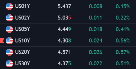 Lợi suất trái phiếu Mỹ giảm nhẹ sau báo cáo CPI và đồng đô la giảm nhẹ. Lợi suất hai năm giảm xuống 5.01% trong khi đồng đô la nhìn chung giảm nhẹ hơn, bao gồm cả so với đồng euro.
