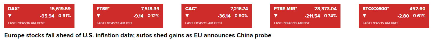 Lợi suất trái phiếu ở châu Âu và Mỹ đồng loạt tăng là điều cần được chú ý. Lợi suất kho bạc kỳ hạn 10 năm đang hướng tới việc phá vỡ mức 4.30% trước dữ liệu CPI. Đà giảm của trái phiếu châu Âu là do kỳ vọng ECB tăng lãi suất trong cuộc họp ngày mai.