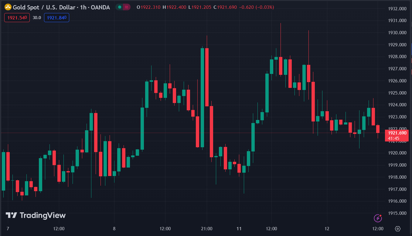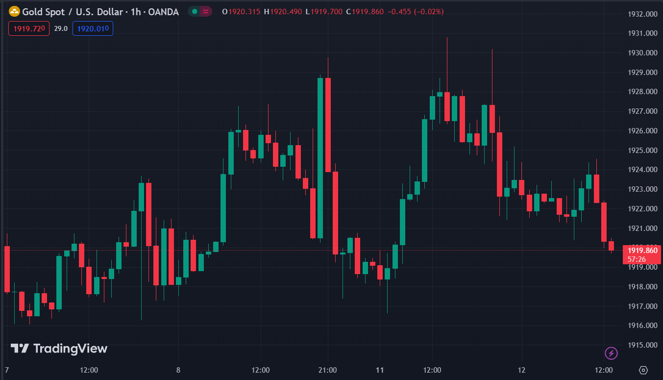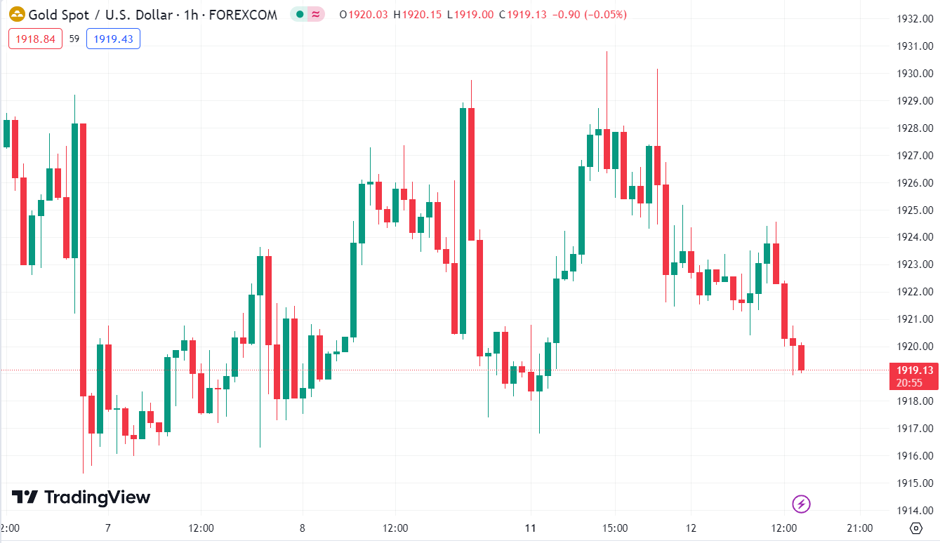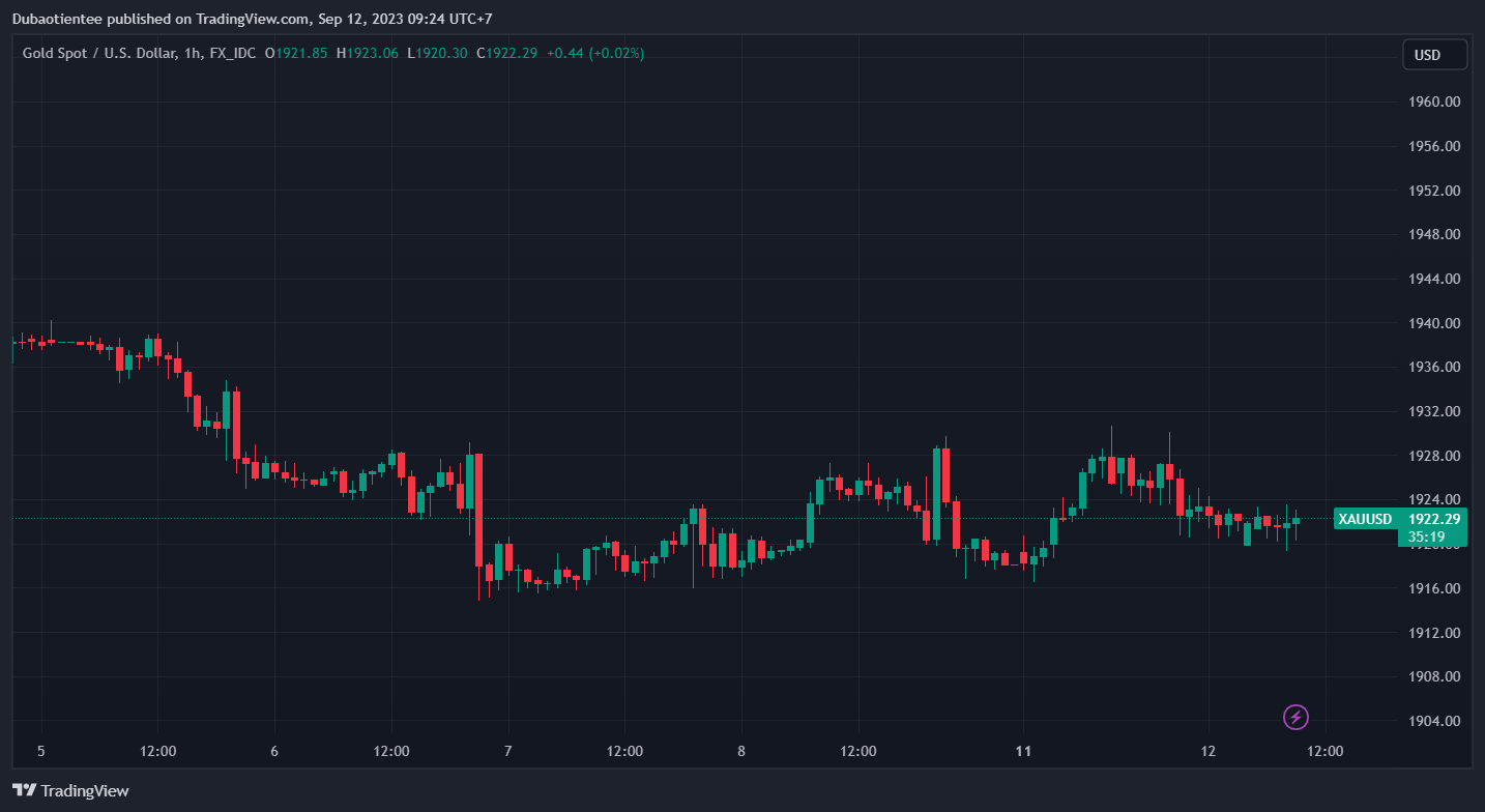 Vàng giảm nhẹ, giao dịch quanh $1,923.