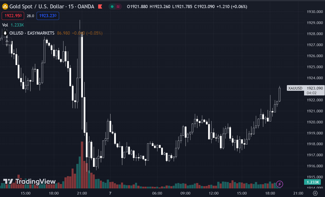 Các dữ liệu gây thất vọng trong vài tuần qua đã hỗ trợ vàng lấy lại vị thế vì tài sản này nhạy cảm với kỳ vọng về lãi suất. Trên thực tế, kỳ vọng thị trường đã trở nên ôn hòa hơn khi dự kiến sẽ không có thểm đợt tăng lãi suất nào sắp tới và Fed sẽ tiến hành cắt giảm sau tháng 6/2024. Tuy nhiên, báo cáo PMI dịch vụ ISM tháng 8 tại Hoa Kỳ tăng vượt kỳ vọng đã làm đảo ngược tình thế, phe diều hâu đã nhìn thấy cơ hội 50/50 sẽ có thêm một tăng lãi suất khác vào tháng 11 và ít cơ hội cắt giảm vào năm 2024 hơn. Các dữ liệu kinh tế hiện đóng vai trò vô cùng quan trọng khi thị trường tỏ ra hoang mang trước triển vọng tăng lãi suất lên cao hơn hoặc suy thoái kinh tế.