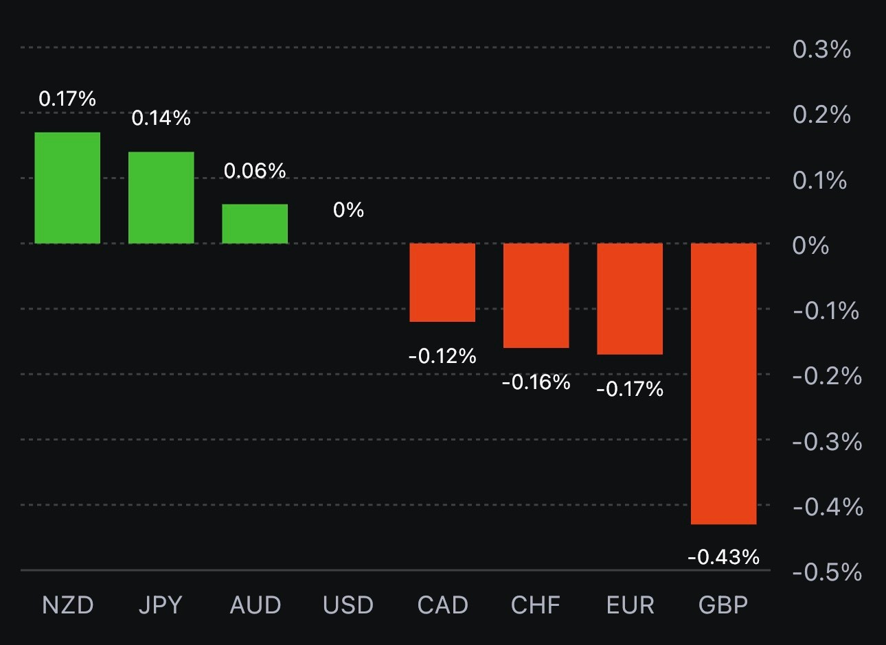 USD sẽ sớm lấy lại vị thế dẫn đầu trong bối cảnh chứng khoán châu Âu mở cửa giảm nhẹ (hiện HĐTL chỉ số S&P 500 đang giảm hơn 10 điểm, tương đương -0.25% trong ngày. Thị trường trái phiếu vẫn giao dịch tương đối nhạt nhòa (lợi suất TPCP Hoa Kỳ 10 năm duy trì ở quanh mức 4.29%), tuy nhiên USD vẫn đang hưởng lợi từ sự suy yếu của đồng NDT Trung Quốc lúc này.