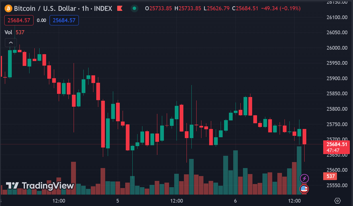 Bitcoin tăng 0.14%, hiện ở $25,795