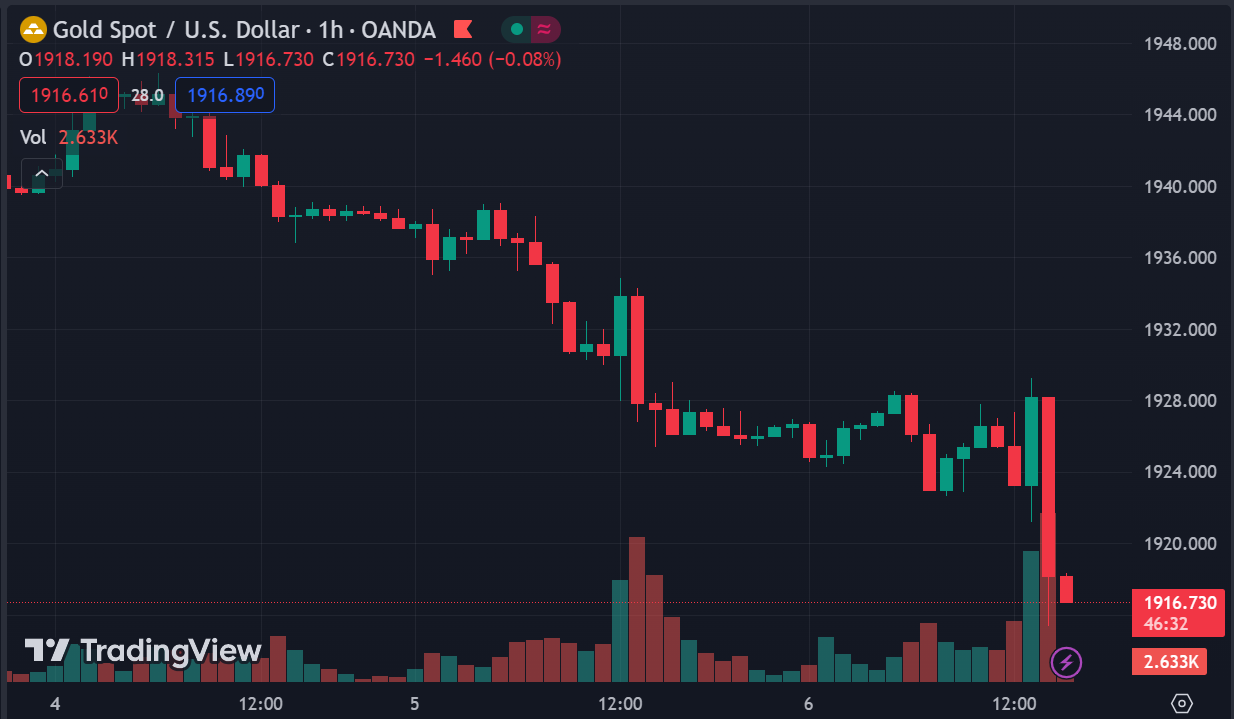 Vàng giảm $9, kết phiên ở $1916. Lợi suất trái phiếu kho bạc đồng loạt tăng với lợi suất trái phiếu kỳ hạn 10 năm tăng 3.1 điểm cơ bản lên 4.30%. Dầu thô có ngày tăng thứ 9 liên tiếp khi dầu thô WTI tăng 0.99 USD lên 87.68 USD và dầu thô Brent vượt mức 90 USD.