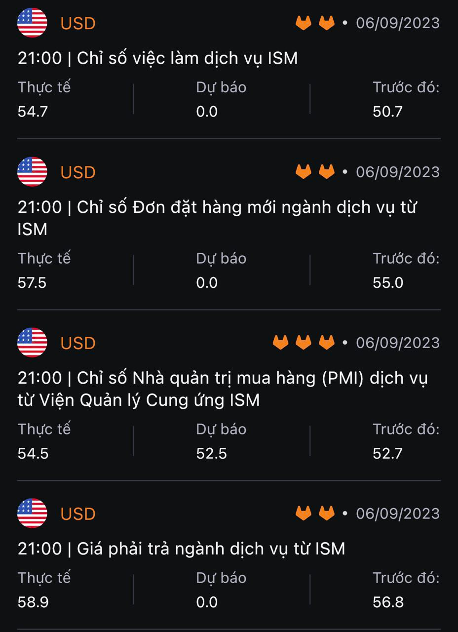 Dữ liệu dịch vụ ISM sắp được công bố và có thể thấy rủi ro giảm đối với mức đồng thuận là 52.5