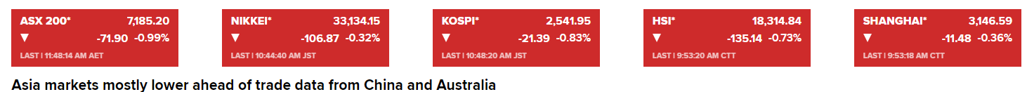 Sắc đỏ bao trùm thị trường chứng khoán châu Á: