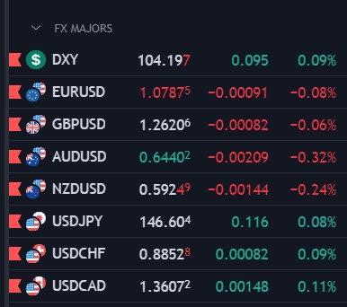 Các tiền tệ chính đều xuy yếu sau dữ liệu PMI gây thất vọng tại Trung Quốc. Ngoài ra, cổ phiếu của Trung Quốc cũng giảm khi có thêm tin tức Country Garden sẽ chỉ còn vài giờ để thanh toán khoản nợ 22.5 triệu USD