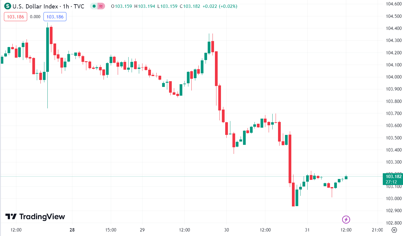 DXY tăng nhẹ trong phiên, hiện đang ở mức 103.182.
