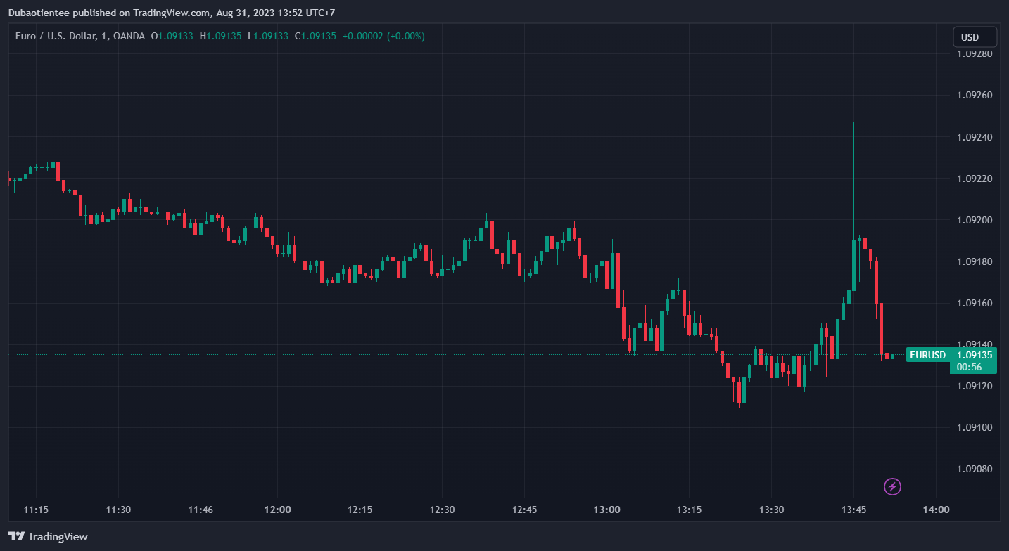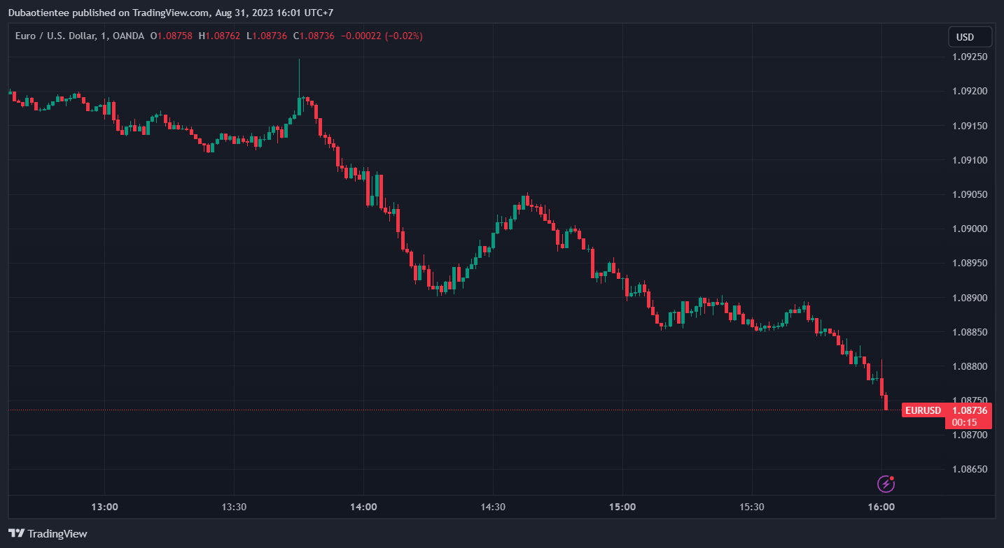 Xác suất ECB tăng lãi suất theo kỳ vọng thị trường đã tăng lên 60% sau báo cáo lạm phát sơ bộ tại Pháp , nhưng đã nhanh chóng giảm xuốn. Bình luận trung lập từ quan chức ECB Schnabel cũng không củng cố niềm tin về một đợt tăng khác. EUR/USD đã chịu áp lực khi giảm khoảng 0.20% xuống 1.09 vào đầu phiên Âu.