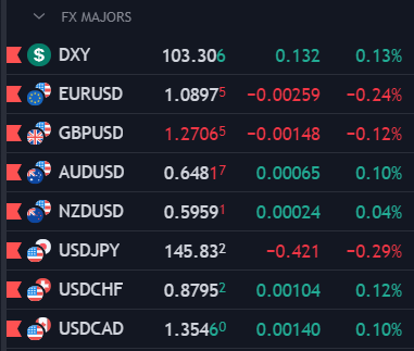 Trên thị trường FX, USD lao dốc sau công bố dữ liệu ADP, đã có thời điểm trở thành đồng tiền yếu nhất trong nhóm tiền tệ chính khi giảm 0.78% so với GBP, 0.59% so với EUR và 0.51% so với cả AUD và NZD trước khi hồi nhẹ vào cuối ngày. GBP mạnh nhất, JPY yếu nhất trong nhóm G10 vào cuối ngày. GBPUSD tăng 0.61% lên 1.2720. USDJPY tăng 0.25%, vượt mức 146.00, kết phiên ở 146.20.