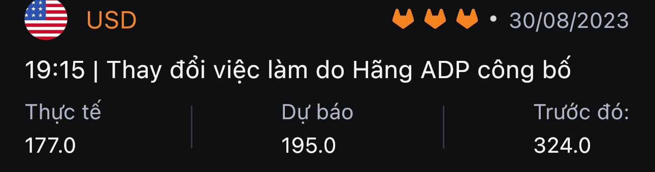 Dữ liệu API vào cuối ngày hôm qua cho thấy: