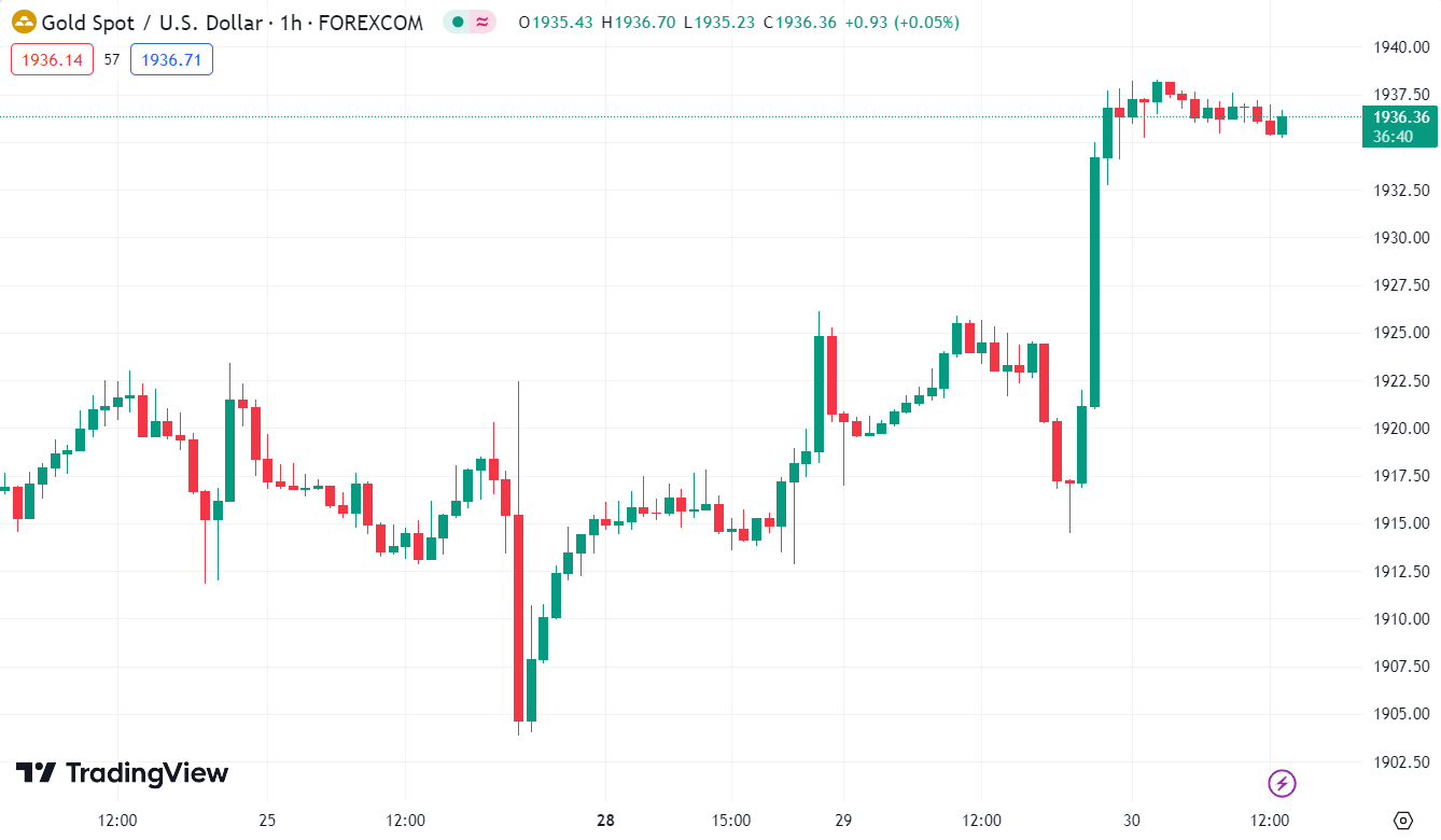 Lợi suất giảm mạnh đầu phiên Mỹ do loạt dữ liệu đáng thất vọng đã hỗ trợ vàng bật tăng mạnh mẽ, khoảng $21 từ đáy ngày tại $1914.10/oz. Chốt phiên, kim loại quý đóng cửa tăng $17/30 lên gần đỉnh ngày tại $1936.90/oz. Trên thị trường nợ, lợi suất TPCP 2 năm và 10 năm lần lượt -15.6bp và -8.6bp xuống 4.898% và 4.122%. Trong đó, lợi suất 2 năm ghi nhận phiên giảm mạnh nhất trong 2 tháng qua. Dầu thô phục hồi mạnh mẽ trong thời gian còn lại của ngày giao dịch, sau khi đã giảm mạnh khoảng $1.5 xuống $79.34/thùng trong những giờ đầu mở cửa phiên Mỹ. Chốt phiên, dầu WTI tăng $1.06 lên $81.16/thùng. Bitcoin hồi lại gần nửa mức giảm trong tháng sau pha bật tăng mạnh mẽ (gần $2000) lên hơn 28.1K trong phiên Mỹ nhờ việc tòa án Mỹ ủng hộ Grayscale trong vụ kiện tụng với Ủy ban Giao dịch và Chứng khoán Mỹ (SEC). Tuy nhiên, đà giảm nhẹ về cuối phiên đã khiến BTC đóng cửa thấp hơn tại 27.7K.
