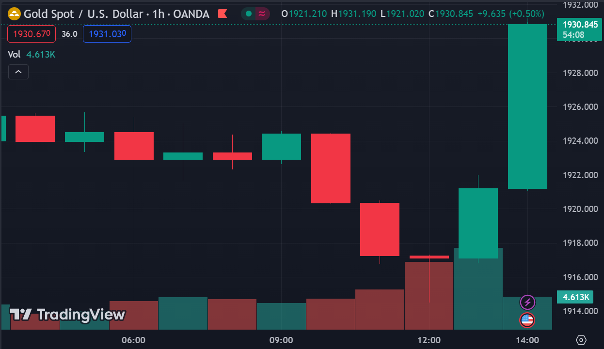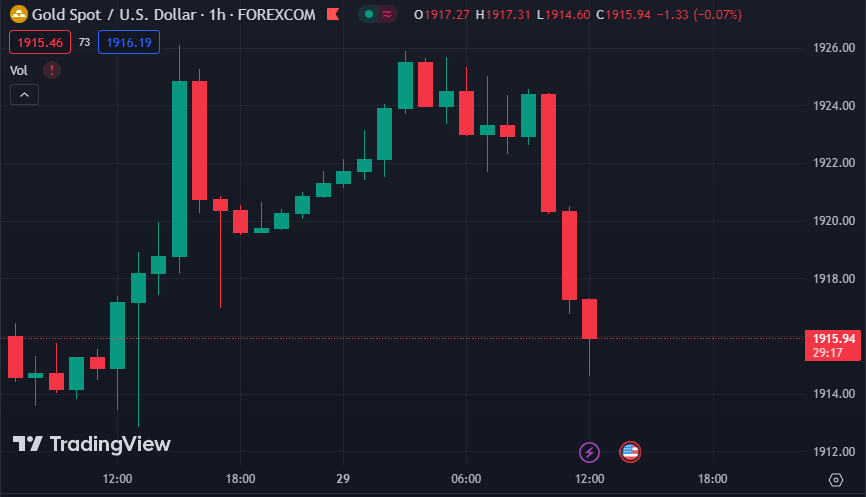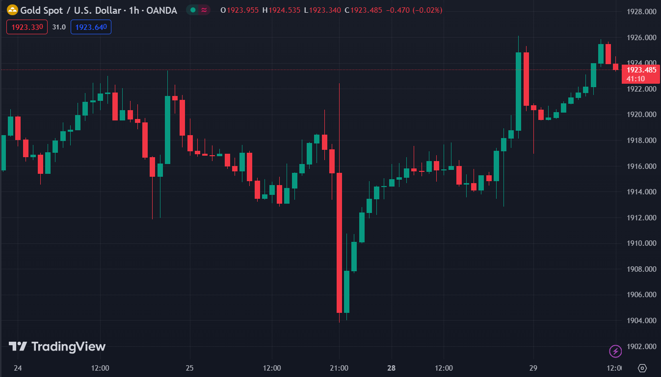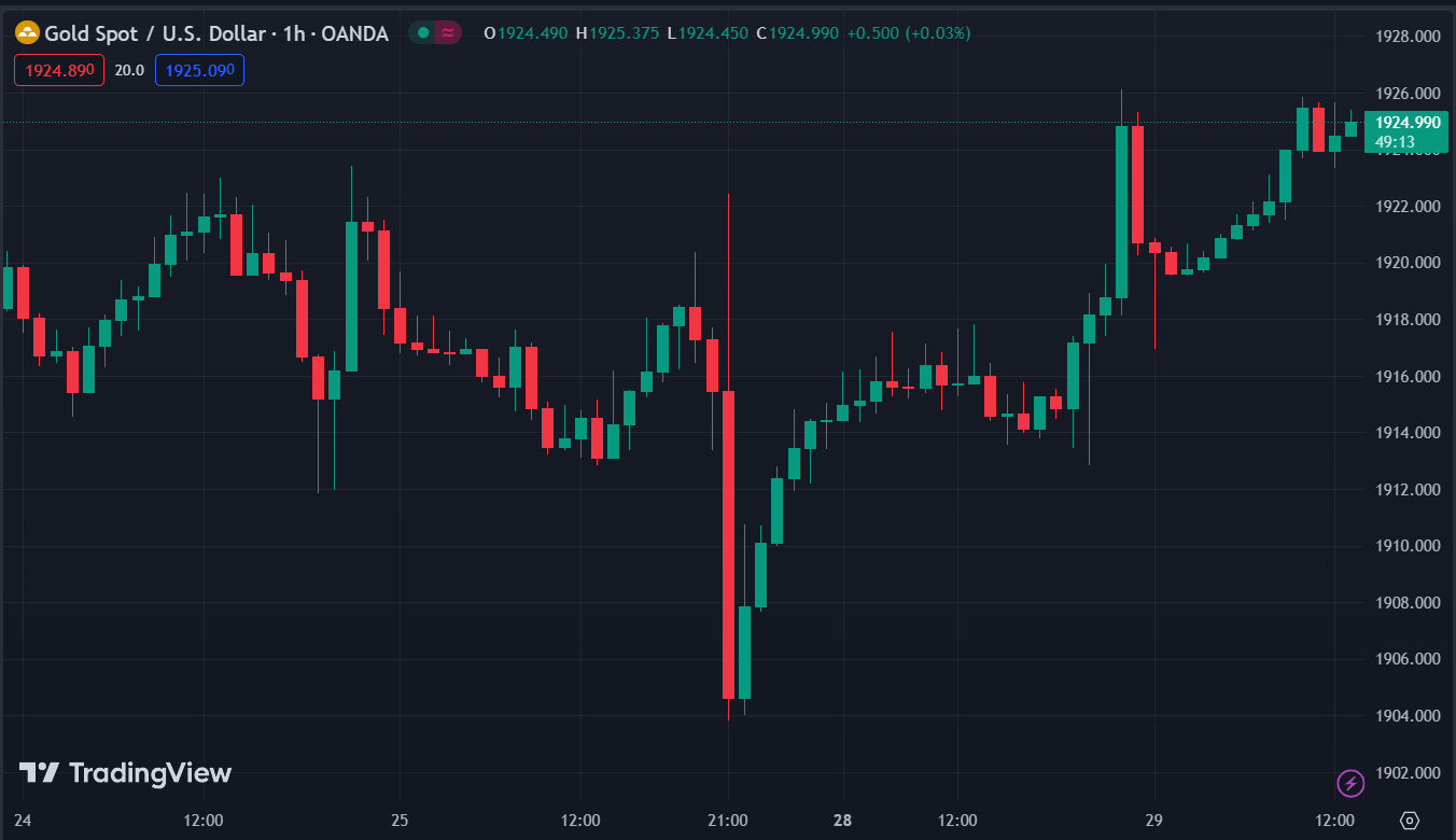 Sau khi giảm nhẹ xuống dưới $1,924, vàng hiện quay lại $1,925.35