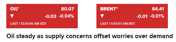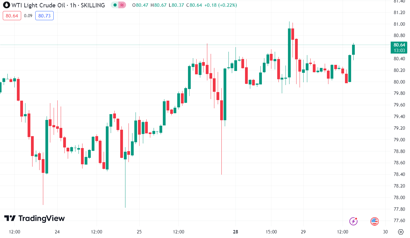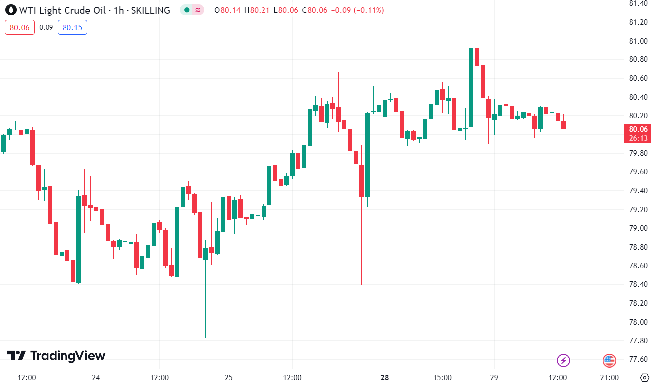 Dầu thô WTI giảm 0.04%, hiện ở $80.07/ thùng.