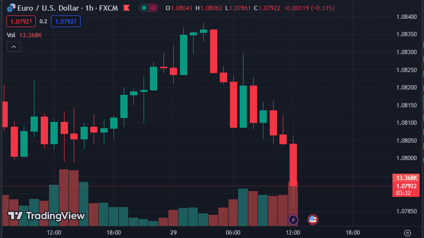 EURUSD đang chạm đáy trong phiên và trong quá trình di chuyển khỏi mức MA 100 ngày là 1.08068. Giá đang tiến vào vùng dao động trong khoảng từ 1.0773 đến 1.0789. Dưới mức đó, mục tiêu tiếp theo sẽ là 1.07653