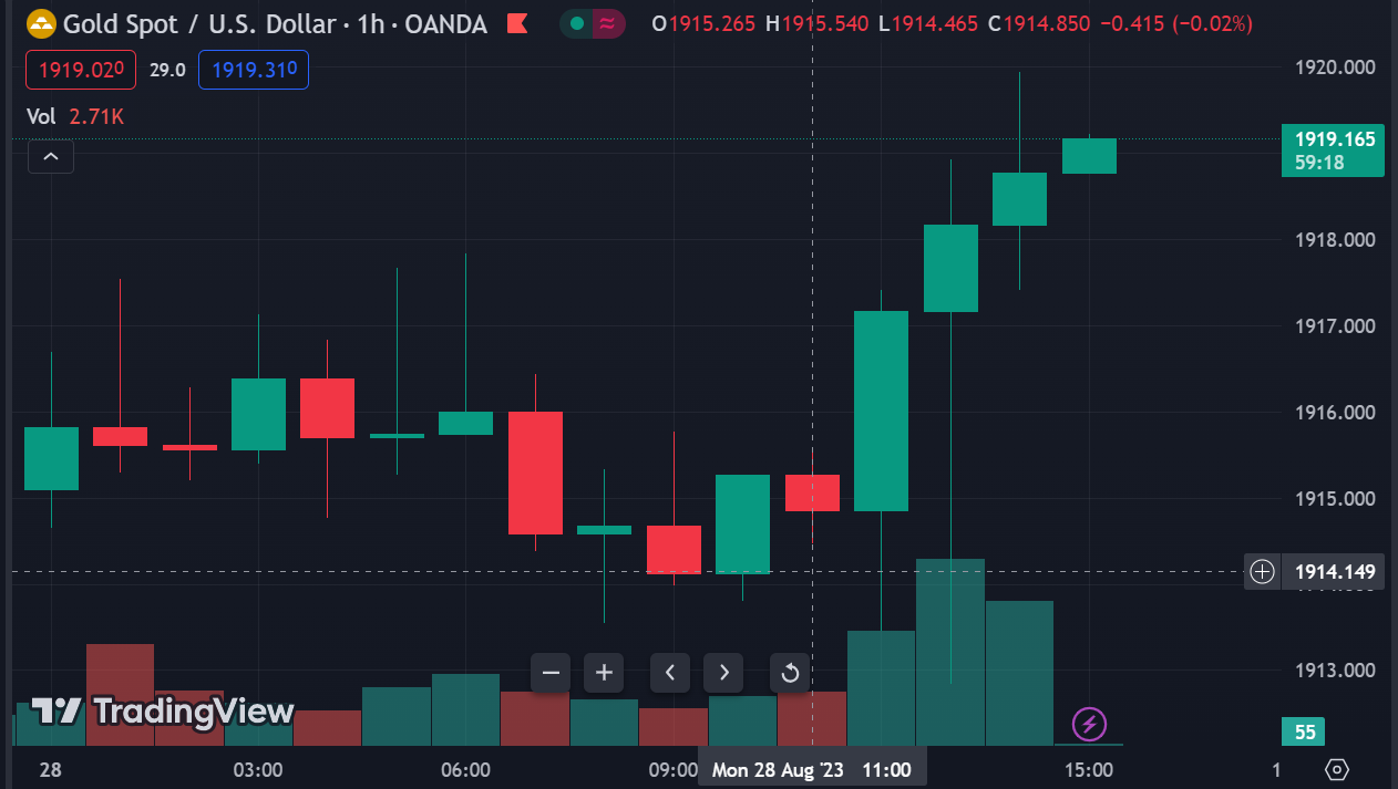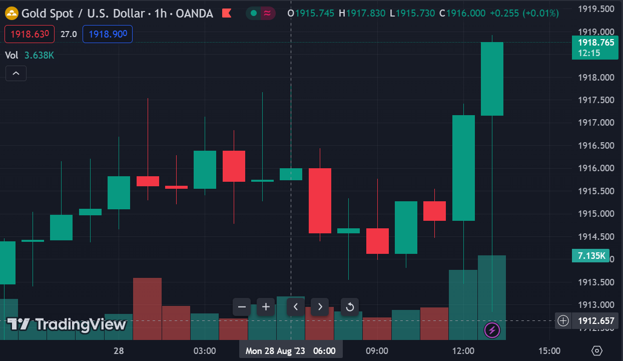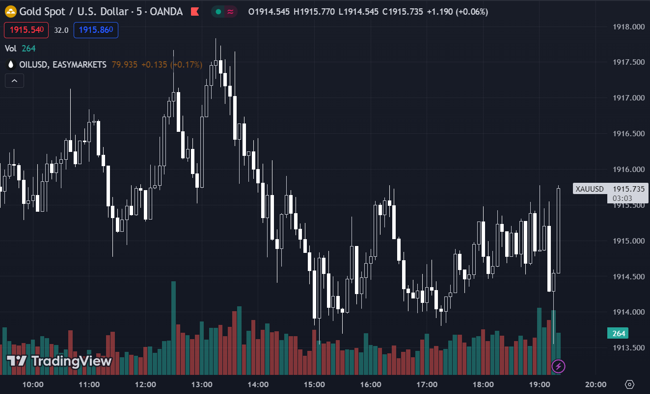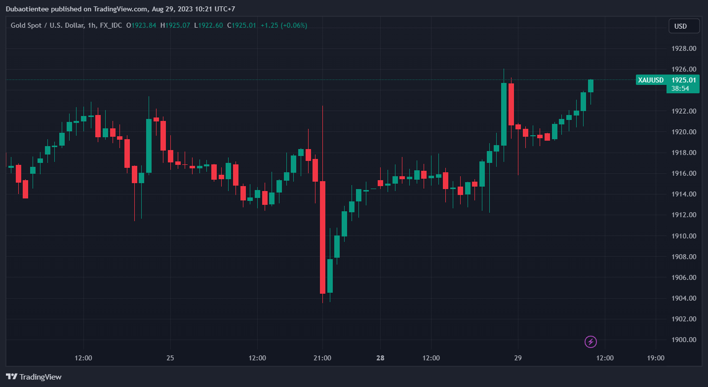 Vàng quay đầu giảm trong đêm sau khi tiếp đà phục hồi của phiên thứ Hai lên trên $1926/oz, do lợi suất giảm mạnh vào đầu phiên Mỹ. Chốt phiên, kim loại quý tăng $5.08 lên $1919.60/oz. Trên thị trường nợ, lợi suất TPCP 2 năm và 10 năm lần lượt giảm 2.6bp và 3.1bp xuống 5.054% và 4.208%. Dầu thô đóng cửa đi ngang sau khi tăng lên gần $1 đầu phiên mỹ. Chốt phiên, dầu WTI tăng $0.27 lên $80.10/thùng.