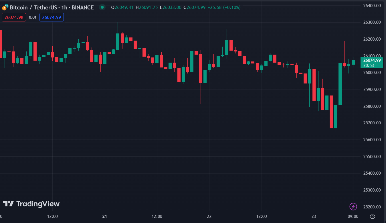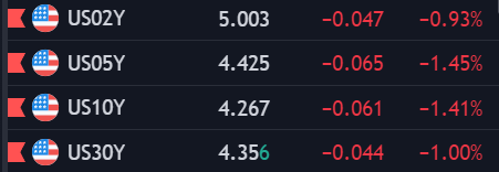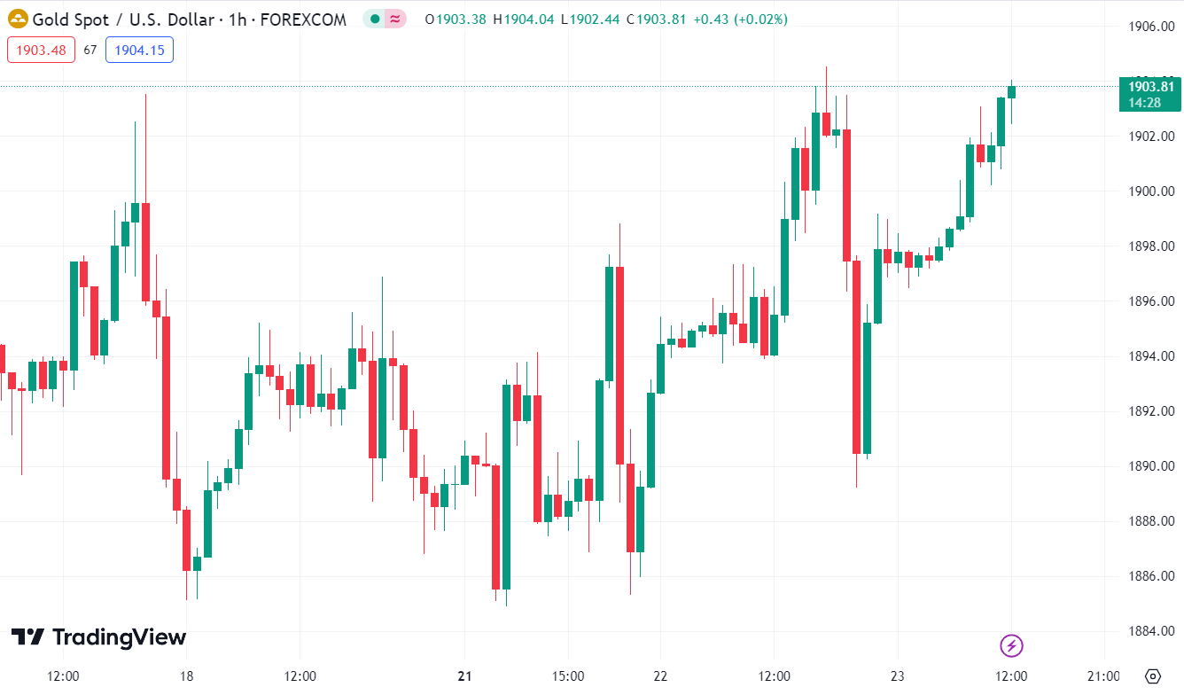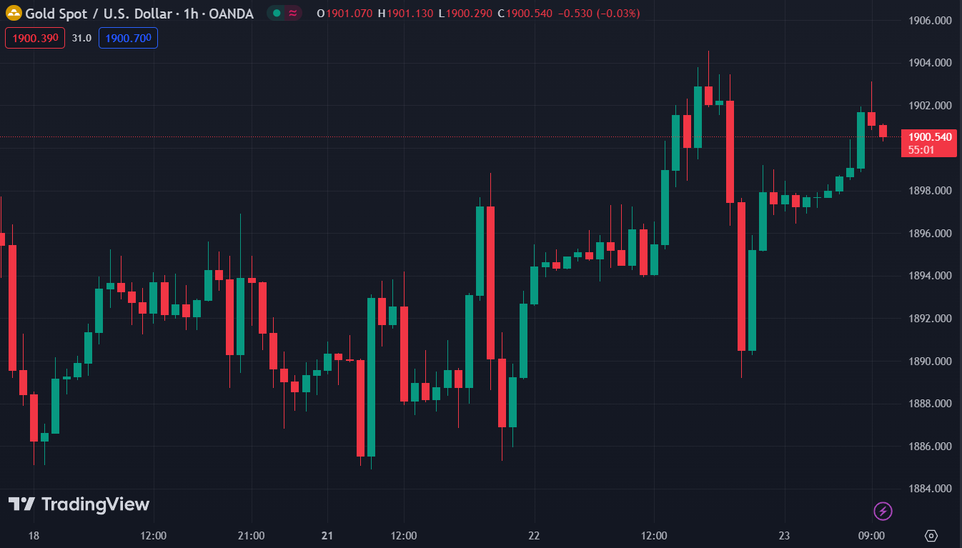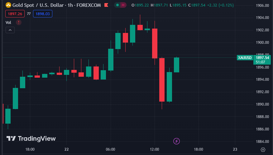 Lợi suất quay đầu giảm giữa phiên Mỹ đã hỗ trợ vàng hồi nhẹ lên $1900/oz, sau khi giảm đến gần $15 từ đỉnh ngày ($1904.50/oz) vào đầu phiên. Đóng cửa ngày giao dịch, vàng tăng $2.74 lên $1897.01/oz. Trên thị trường nợ, lợi suất trái phiếu kho bạc kỳ hạn 2 năm tăng 4.3bp lên 5.05%, trong khi lợi suất 10 năm giảm 1.4bp xuống 4.328%. Dầu thô trượt giá ngày thứ hai liên tiếp khi giảm $0.48 xuống $79.64/thùng. Bitcoin hồi mạnh lên trên 26K sau khi liên tục đi ngang trong phiên thứ Hai rồi bất ngờ giảm hơn $600 cuối phiên thứ Ba.