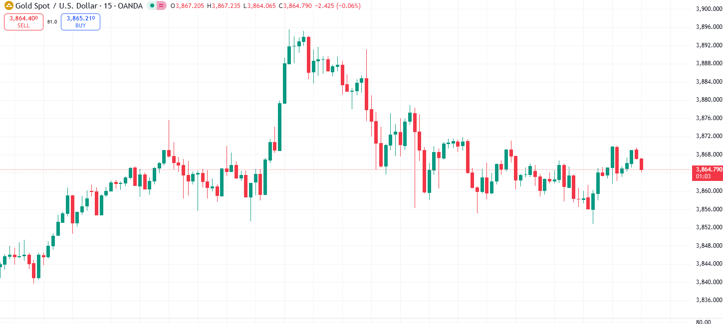 Giá vàng tiếp tục giao dịch quanh 3,860 USD/oz nhờ kỳ vọng Fed cắt giảm lãi suất và rủi ro từ việc chính phủ Mỹ đóng cửa.