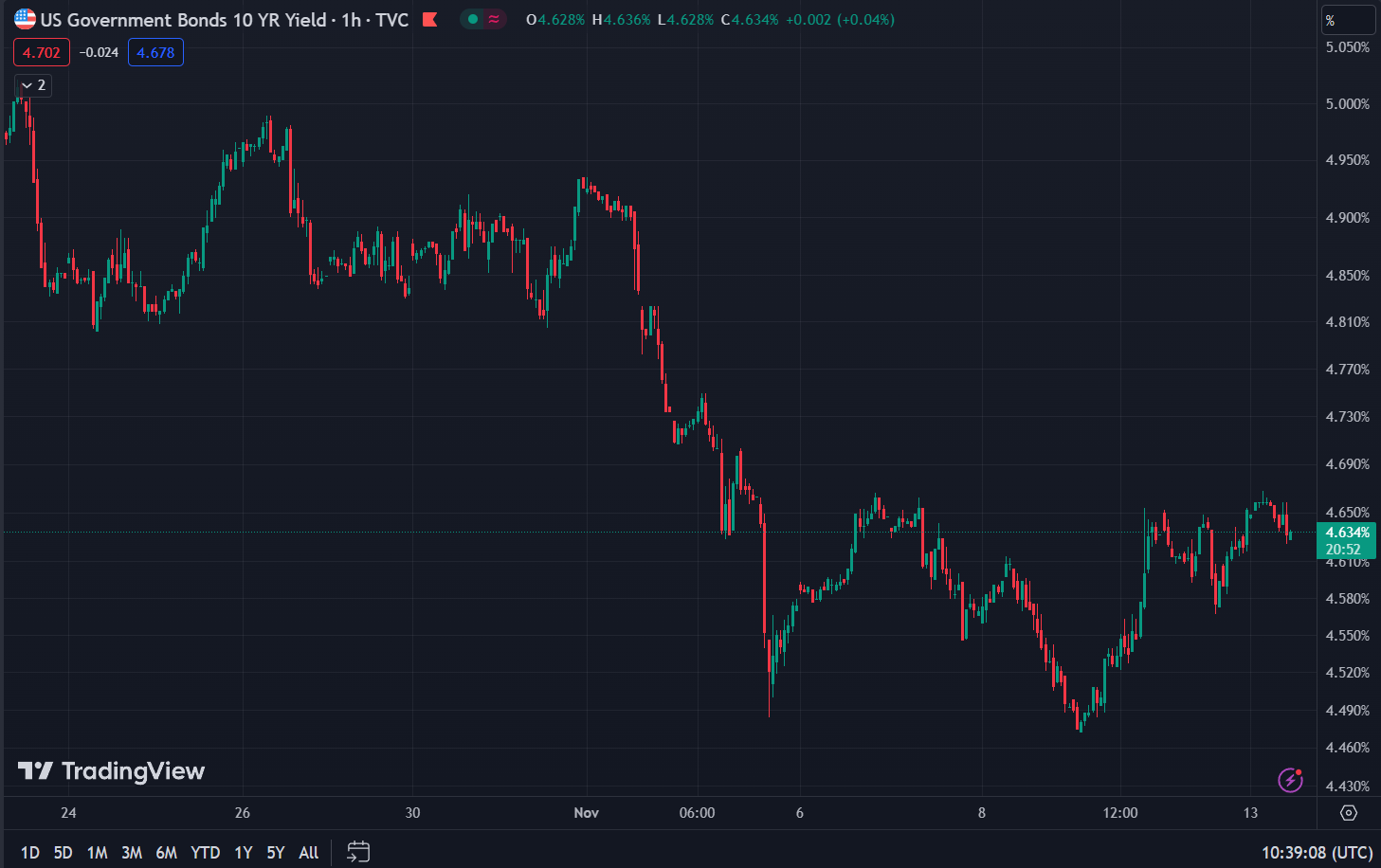 Cập nhật thị trường: Lợi suất trái phiếu Mỹ 10 năm ở mức 4.63%