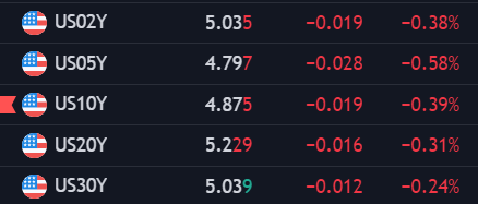 - Lợi suất trái phiếu 10 năm của Mỹ giảm 0.08% xuống 4,812%