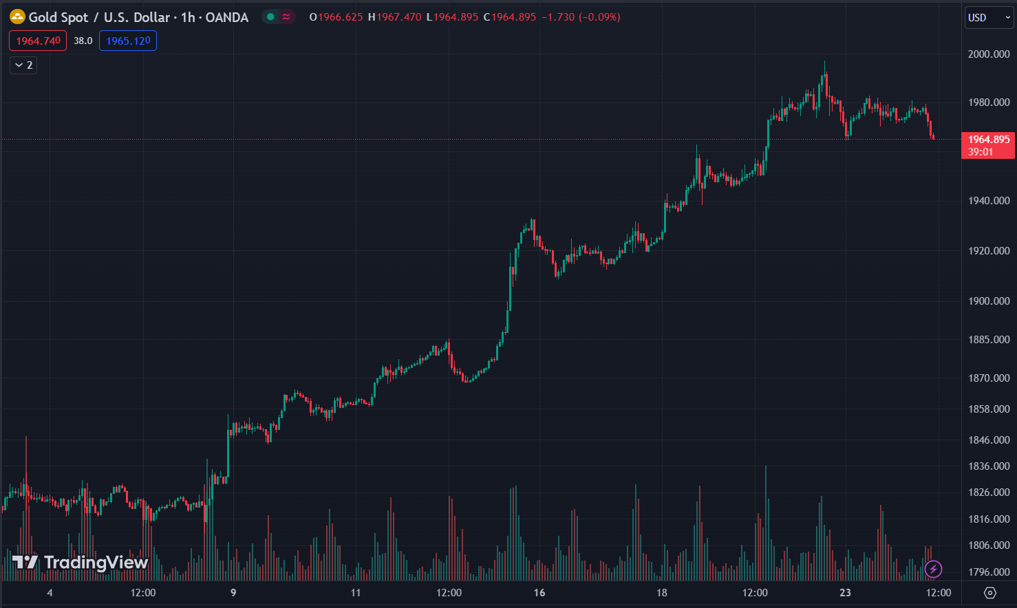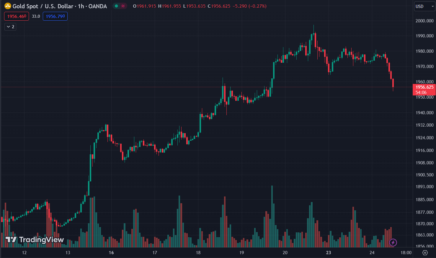 Vàng (XAU/USD) - Khung đồ thị 1h