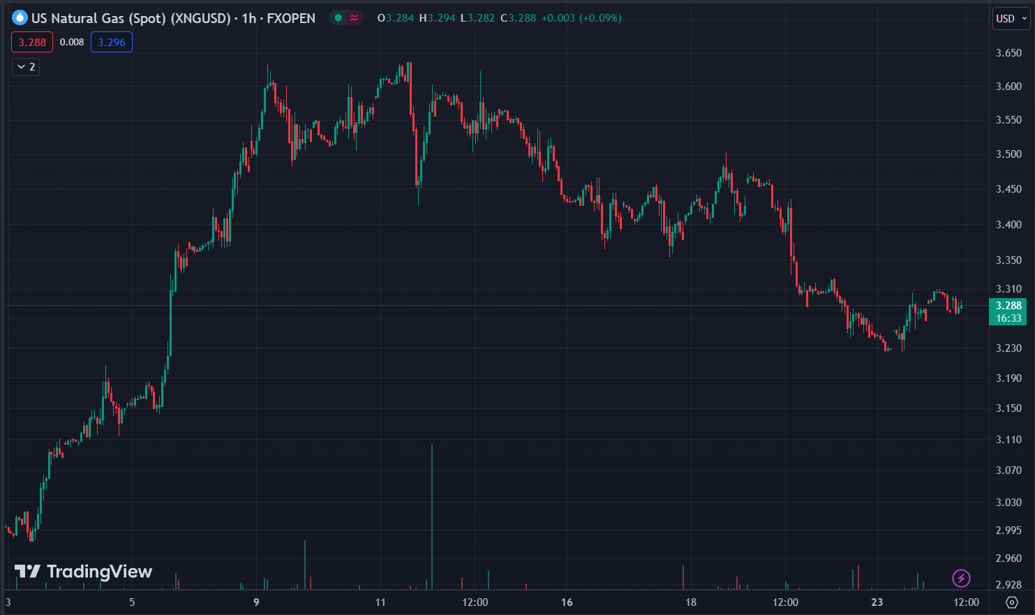 Khí đốt tự nhiên hiện được giao dịch ở mức 3.29 USD/MMBtu vào thời điểm viết bài.