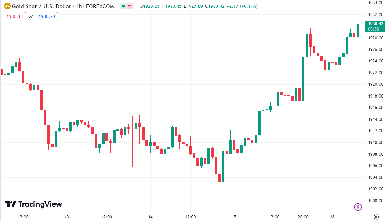 Vàng có một phiên giao dịch khởi sắc, bắt đầu với đà tăng tích cực (khoảng $10) từ đầu phiên Á nhờ loạt dữ liệu kinh tế tháng 8 tích cực tại Trung Quốc. Cả doanh số bán lẻ, sản xuất công nghiệp đểu tăng mạnh hơn dự kiến, trong khi thất nghiệp giảm nhẹ. Sang phiên Mỹ, bật lên gần $14, chạm đỉnh ngày tại $1930/oz sau dữ liệu UMich vào đầu phiên, nhưng tâm lý thị trường giảm sút đã khiến vàng quay đầu giảm về $1923.56/oz. Trên thị trường trái phiếu, lợi suất 2 năm và 10 năm lần lượt tăng 2.1bp và 4.2bp lên 5.037% và 4.334%. Dầu thô đảo chiều tăng mạnh sau khi chạm đáy ngày tại gần $89.20/thùng. Chốt phiên, dầu WTI tăng $0.61 lên $90.77/thùng. BTC nhìn chung đi ngang quanh 26.5K trong phần lớn 3 ngày giao dịch cuối tuần, sau khi không thể chạm đến 26.2K trong buổi sớm ngày giao dịch thứ Bảy và hồi lại lên trên vùng 26.8K.