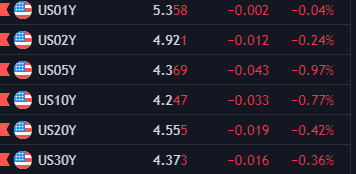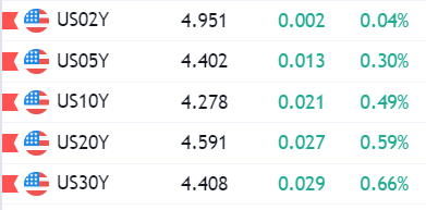 Lợi suất trái phiếu Hoa Kỳ đã ở mức thấp tại 4.22% nhưng sau đó đã tăng 5 điểm cơ bản và không dao động nhiều trong ngày