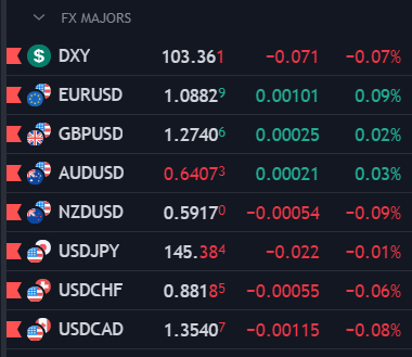 Vàng liên tục mở rộng đà giảm từ đỉnh ngày tại $1897/oz trong phiên Mỹ, bất chấp việc USD trượt giá và lợi suất phải đến giữa đêm mới tăng trở lại. Chốt phiên, vàng giảm $0.72 xuống $1888.9/oz. Trên thị trường nợ, lợi suất TPCP 2 năm tăng 1.6bp lên 4.949%, trong khi lợi suất 10 năm giảm 2.3bp xuống 4.257%. Dầu thô tăng phiên thứ hai liên $0.27 lên $80.66/thùng. Bitcoin hồi nhẹ lên 26.1K và đi ngang trong hai ngày giao dịch cuối tuần, sau pha sập mạnh xuống dưới 25.2K sáng sớm ngày thứ Bảy.
