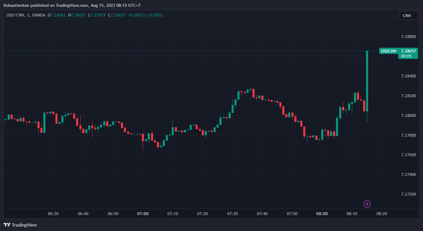 Ngân hàng Nhân dân Trung Quốc (PBoC) đã bất ngờ cắt giảm lãi suất lần thứ 2 trong ba tháng khi: Hạ lãi suất Cơ sở cho vay trung hạn (MLF) từ 2.65% xuống 2.5% và lãi suất reverse repo từ 1.9% xuống 1.8%. Theo sau đó là loạt dữ liệu kinh tế tháng 7 gây thất vọng, bao gồm: sản lượng công nghiệp, doanh số bán lẻ hay tỷ lệ thất nghiệp. USD/CNY và USD/CNH đều tăng vọt sau khi PBOC cắt giảm lãi suất. Các Ngân hàng Quốc doanh Trung Quốc cũng đã can thiệp vào việc bán USD/CNY để hỗ trợ đồng nội tệ.