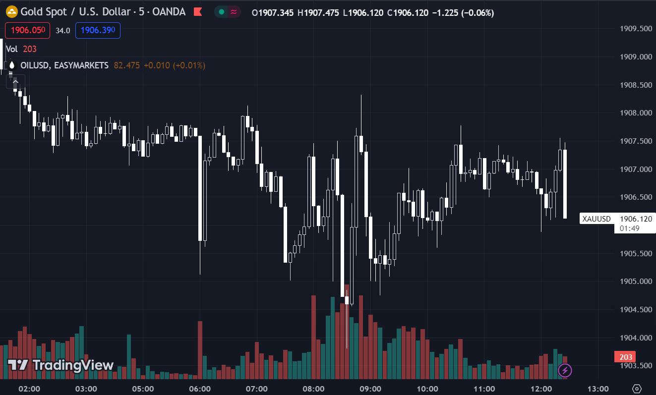 Vàng quay đầu giảm trong đêm sau những nỗ lực thu hẹp đà giảm từ đáy ngày tại $1902/oz đầu phiên Mỹ, chịu áp lực tăng của USD và lợi suất. Chốt phiên, vàng giảm gần $5.90 xuống $1907.15/oz. Trên thị trường trái phiếu, lợi suất 2 năm và 10 năm lần lượt tăng 7.4bp và 3.9bp lên 4.973% và 4.197%. Dầu thô giảm $0.68 xuống $82.51/thùng trong đêm. Bitcoin tăng mạnh lên 29.7K sau khi chạm đấy ngày tại 29.2K đầu phiên Á. Gần về cuối phiên BTC đều chỉnh giảm và giao dịch ổn định quanh 29.4K.
