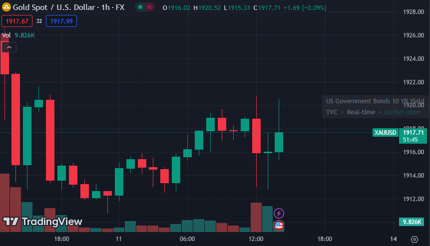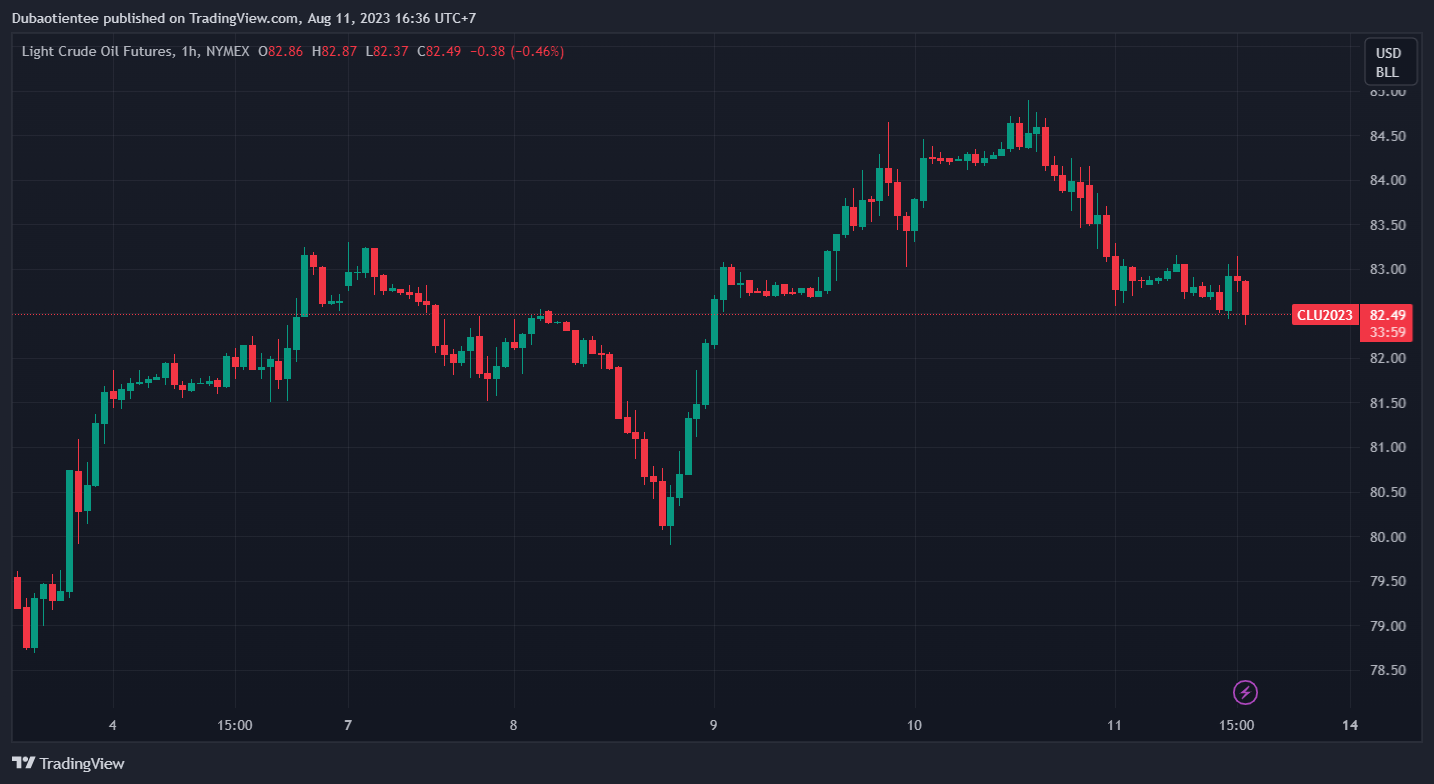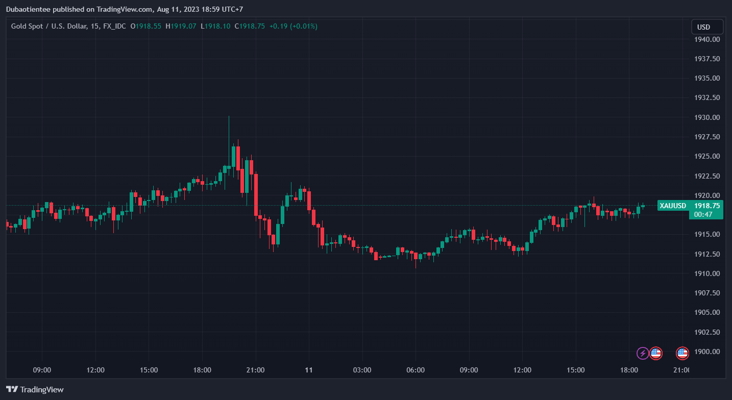 Vàng suy yếu nhẹ, kết phiên ở mức $1912. Dầu thô WTI tăng 35 cent lên 83.17 USD. Lợi suất trái phiếu kho bạc kết phiên ở gần mức đỉnh trong ngày và không xa mức đỉnh của tuần trước đó khi các nhà đầu tư tiếp tục kỳ vọng nền kinh tế Mỹ "hạ cánh mềm". Lợi suất trái phiếu 10 năm của Mỹ tăng 8.8 điểm cơ bản lên 4.17%.