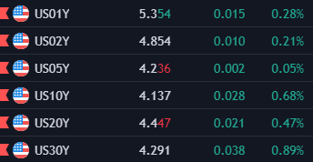 Lợi suất 10 năm của trái phiếu Mỹ tăng 6 điểm cơ bản lên 4.14%.