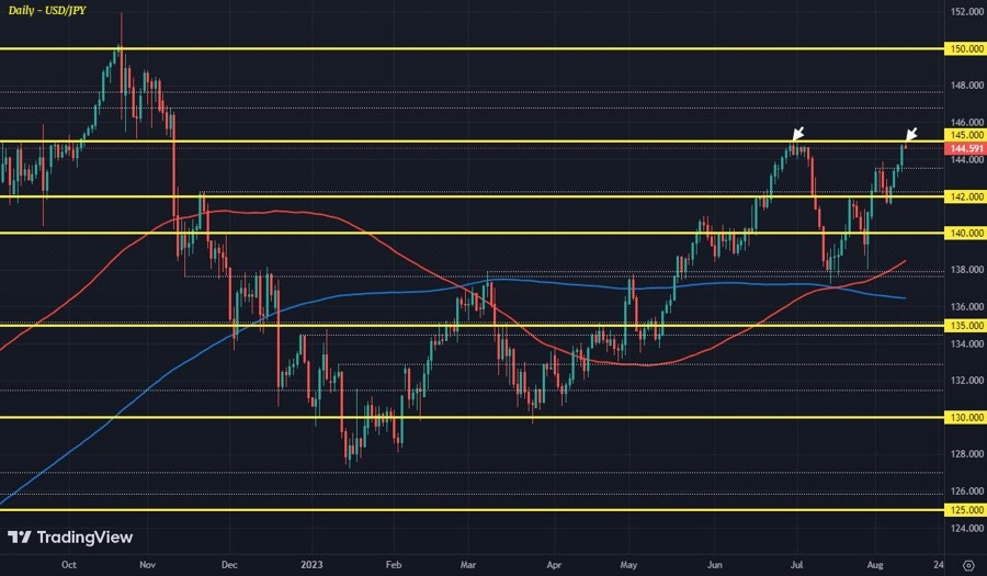 Đầu tiên, rõ ràng nhất là USDJPY đã trở lại ngưỡng kháng cự chính tại 145 một lần nữa. Các quan chức Nhật Bản giảm việc can thiệp vào thị trường FX khi cặp tiền này tăng lên gần đây. Đây có thể là tín hiệu cho một động thái mạnh mẽ hơn trong tương lai, đặc biệt là khi lợi suất trái phiếu đang tăng mạnh.