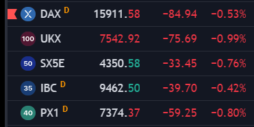 Hoạt động bán ra từ đầu tháng tiếp tục diễn biến trên thị trường chứng khoán châu Âu lúc này. Sự suy yếu về cuối phiên tại Phố Wall ngày hôm qua do báo cáo CPI tháng 7 tại Hoa Kỳ tiếp tục làm xói mòn tâm lý các thị trường hôm nay, bao gồm cả thị trường châu Âu.