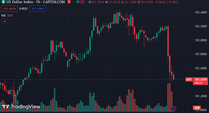Đồng USD tiếp tục giảm mạnh hôm nay, đặc biệt sau khi chỉ số sản xuất của Dallas Fed rơi xuống mức thấp nhất kể từ tháng 5/2020.