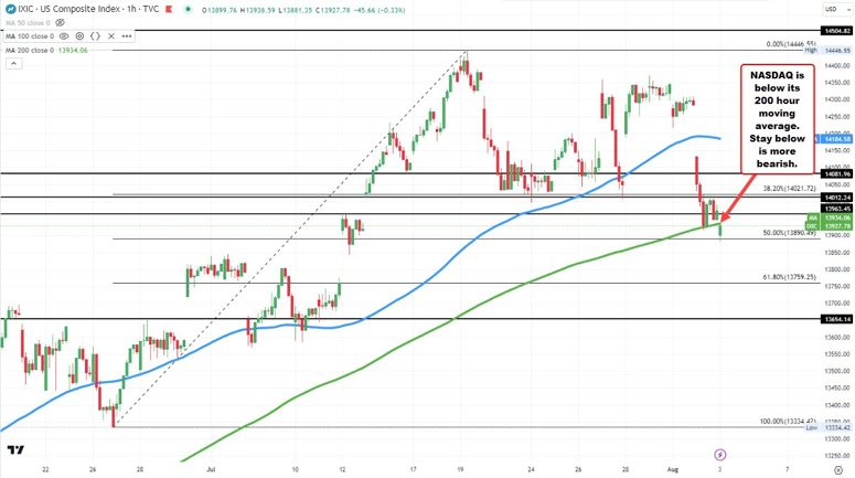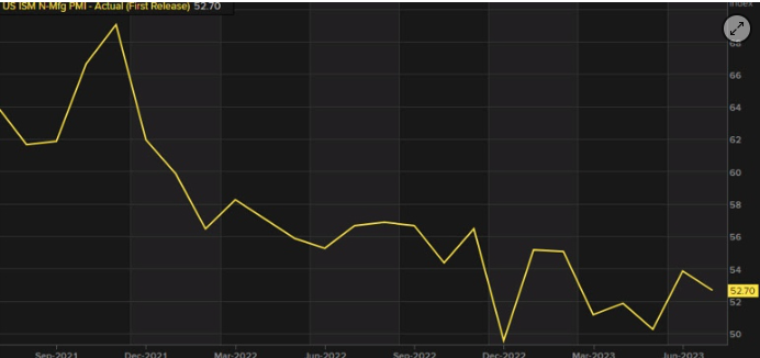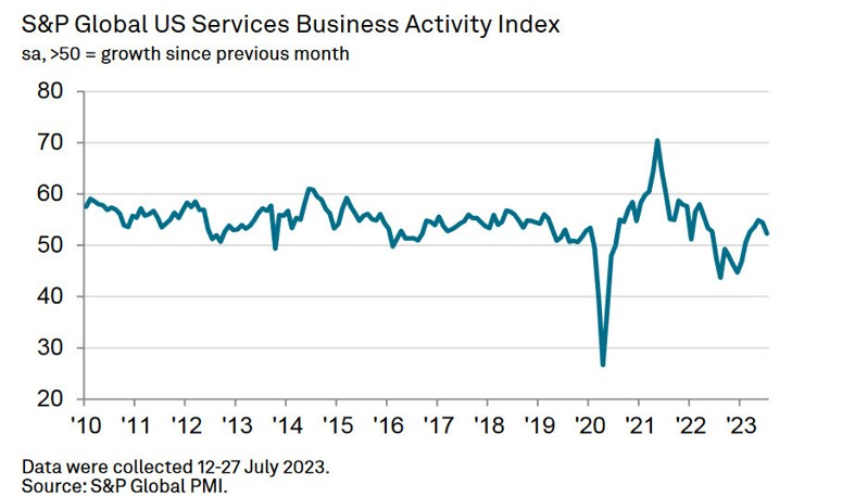 Chứng khoán đồng loạt giảm phiên thứ hai liên tiếp trong bối cảnh thị trường đánh giá các báo cáo lợi nhuận quý 2 kém khả quan và lợi suất dài hạn tăng cao, do báo cáo việc làm (+227K so với dự báo +226K) phù hợp với dự báo sơ bộ quý 2 là năng suất lao động tăng lên mức cao nhất kể từ tháng 5/2022 sẽ làm giảm chi phí lao động (+1.6% so với dự báo +2.5%). Kết phiên, chỉ số S&P 500 và chỉ số Nasdaq giảm ngày thứ 3 liên tiếp:
