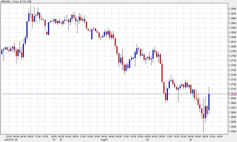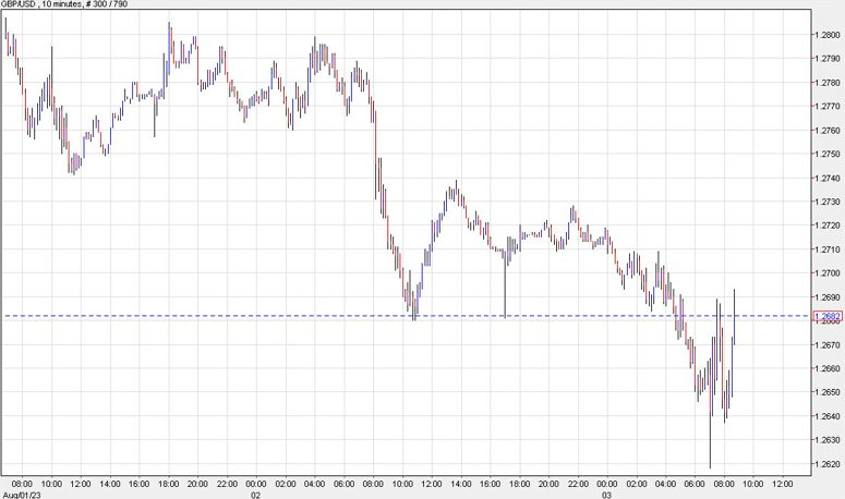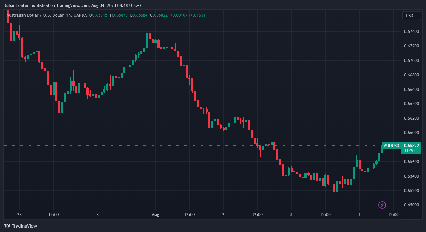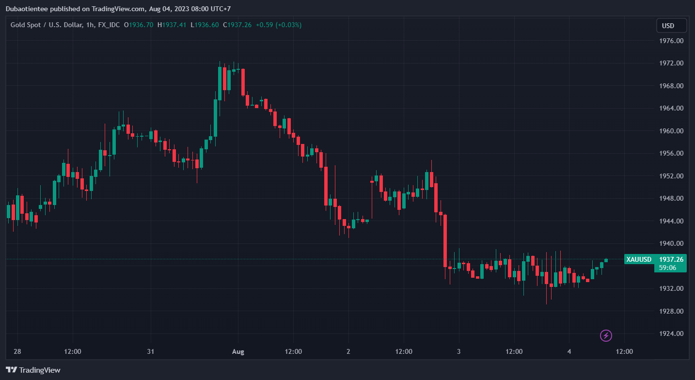 Trên thị trường FX, USD trượt giá sau báo cáo thất nghiệp tuần tại Hoa Kỳ vượt dự kiến và dữ liệu PMI dịch vụ ISM tháng 7 tại Hoa Kỳ yếu hơn (52.7 so với dự báo 53.1 điểm). GBP quét hai chiều và thu hẹp đà giảm trong thời gian còn lại của phiên, phần nào được hỗ trợ bởi quyết định tăng lãi suất thận trọng +25bp của BoE dù lạm phát tại Vương quốc Anh đang cao hơn rất nhiều so với mục tiêu 2%. USD/JPY đảo chiều giảm hơn 180 pip xuống gần 142 đầu phiên u, sau khi tăng lên gần 143.90 - mức cao nhất trong gần một tháng qua. JPY mạnh nhất so với USD trong số các tiền tệ chính, hưởng lợi từ việc lợi suất 10 năm của TPCP Hoa Kỳ gia tăng. CAD lấp mức giảm đầu ngày nhờ USD suy yếu và giá dầu phục hồi mạnh mẽ. CHF quay đầu tăng sau khi giảm nhẹ trước dữ liệu CPI tháng 7 tại Thụy Sĩ giảm 0.1% như dự kiến. Chốt phiên, USD giảm nhẹ trên diện rộng, ngoại trừ GBP, NZD và CAD kết phiên đi ngang.