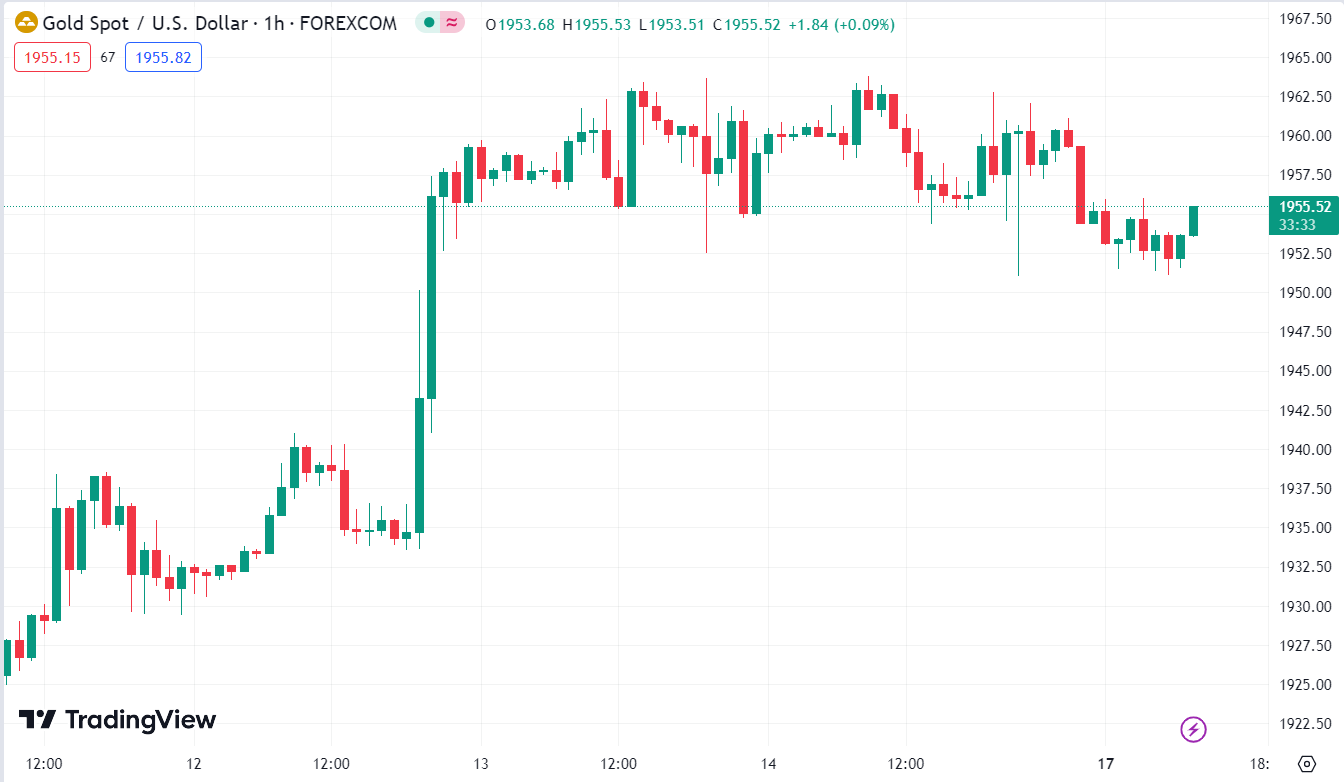 Vàng nhanh chóng lấp mức giảm hơn $10 sau dữ liệu tâm lý tiêu dùng và lạm phát Hoa Kỳ đầu phiên Mỹ do USD và lợi suất tăng nhẹ. Chốt phiên, vàng giảm $5.14 xuống $1954.80/oz. Trên thị trường nợ, lợi suất 2 năm và 10 năm lần lượt tăng 13.1bp và 6.5bp lên 4.772% và 3.834%. Dầu thô giảm mạnh $1.47 xuống $75.42/thùng do dữ liệu giữa phiên Mỹ. Bitcoin lấp mức tăng mạnh của ngày giao dịch thứ Năm sau pha lao dốc xuống 29.9K từ đỉnh ngày tại 31.6K. Trong hai ngày giao dịch cuối tuần, BTC gần như chỉ đi ngang quanh vùng 30.2K.