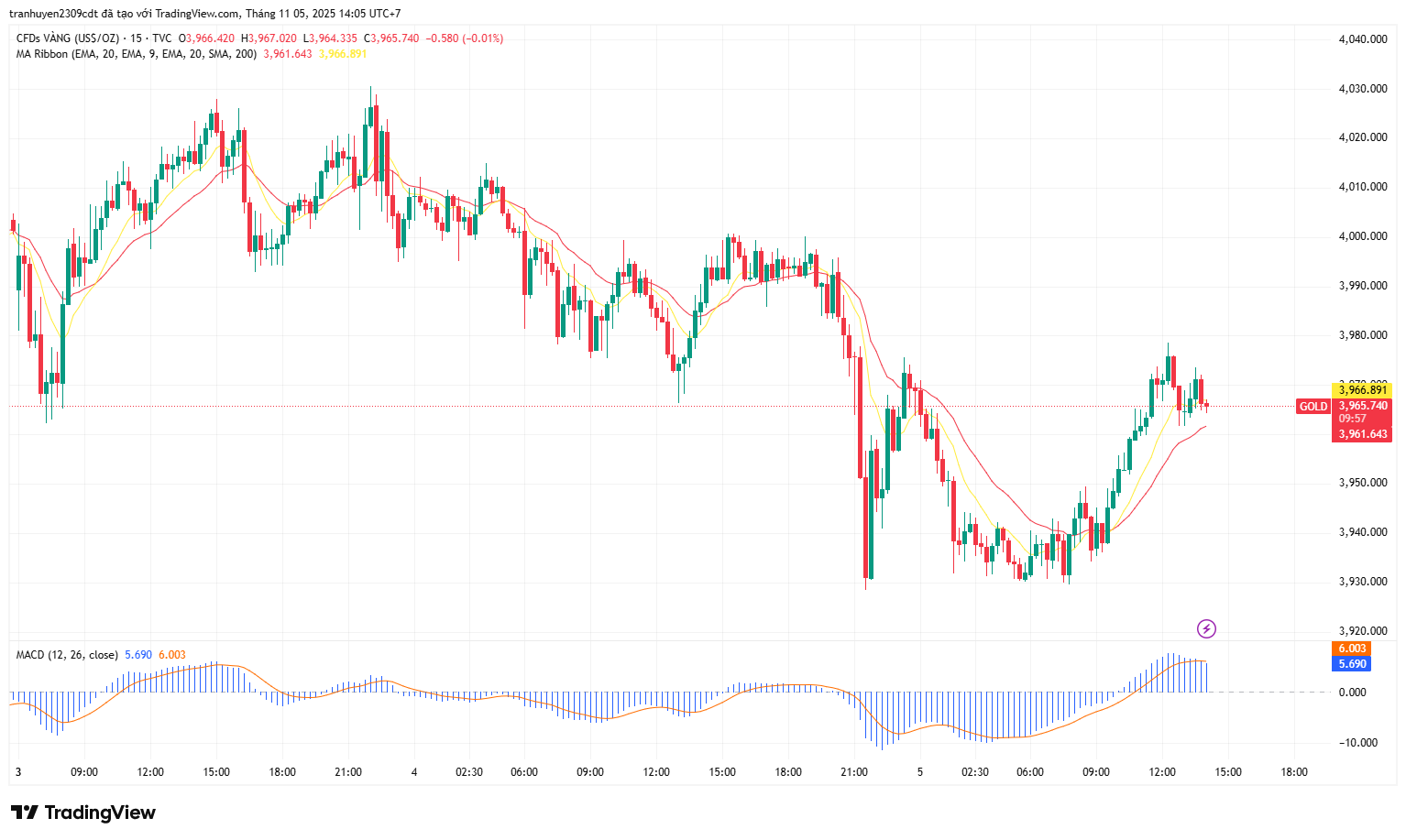 Giá vàng giao dịch quanh mốc 3,985 USD/oz