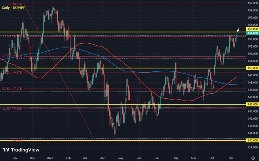 USD/JPY tiếp tục tiến gần mốc 155 khi Thủ tướng Nhật Bản Sanae Takaichi tìm cách kéo BoJ theo hướng của mình.
