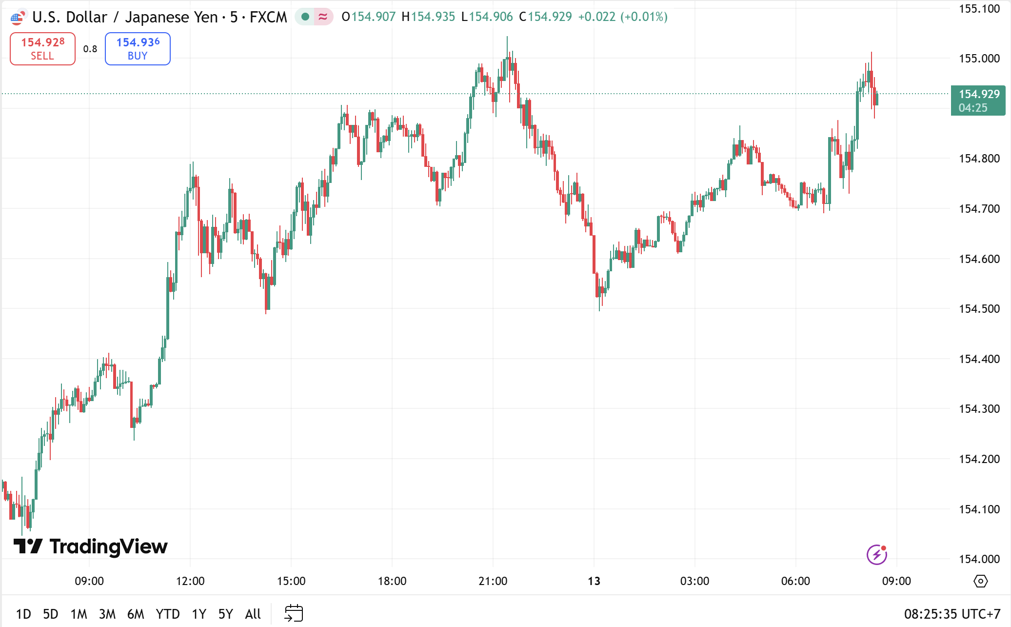 Trên phương diện kỹ thuật, USDJPY hiện đang dao động quanh vùng 154.80 – ngưỡng kháng cự then chốt mà phe bán có thể tận dụng để nhắm mục tiêu giảm về 151.00, trong khi phe mua sẽ tìm kiếm cơ hội bứt phá lên vùng 158.00 nếu giá vượt qua được mốc này.