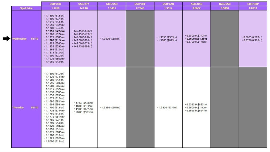 Trong phiên Mỹ, trọng tâm sẽ là báo cáo việc làm ADP và chỉ số PMI sản xuất ISM. Chính phủ Mỹ đã chính thức đóng cửa cách đây vài giờ và nếu tình trạng này kéo dài sang hết thứ Sáu, thị trường sẽ không có số liệu Đơn xin trợ cấp thất nghiệp ngày mai cũng như báo cáo Bảng lương phi nông nghiệp (NFP) vào thứ Sáu. Các dữ liệu do chính phủ công bố sẽ bị hoãn cho tới khi có nguồn tài trợ trở lại. Tuy nhiên, dữ liệu tư nhân vẫn sẽ được phát hành, vì vậy báo cáo ADP có thể trở nên quan trọng hơn lúc này. Dự báo ADP cho thấy có thêm 50,000 việc làm trong tháng 9 so với 54,000 trong tháng 8.