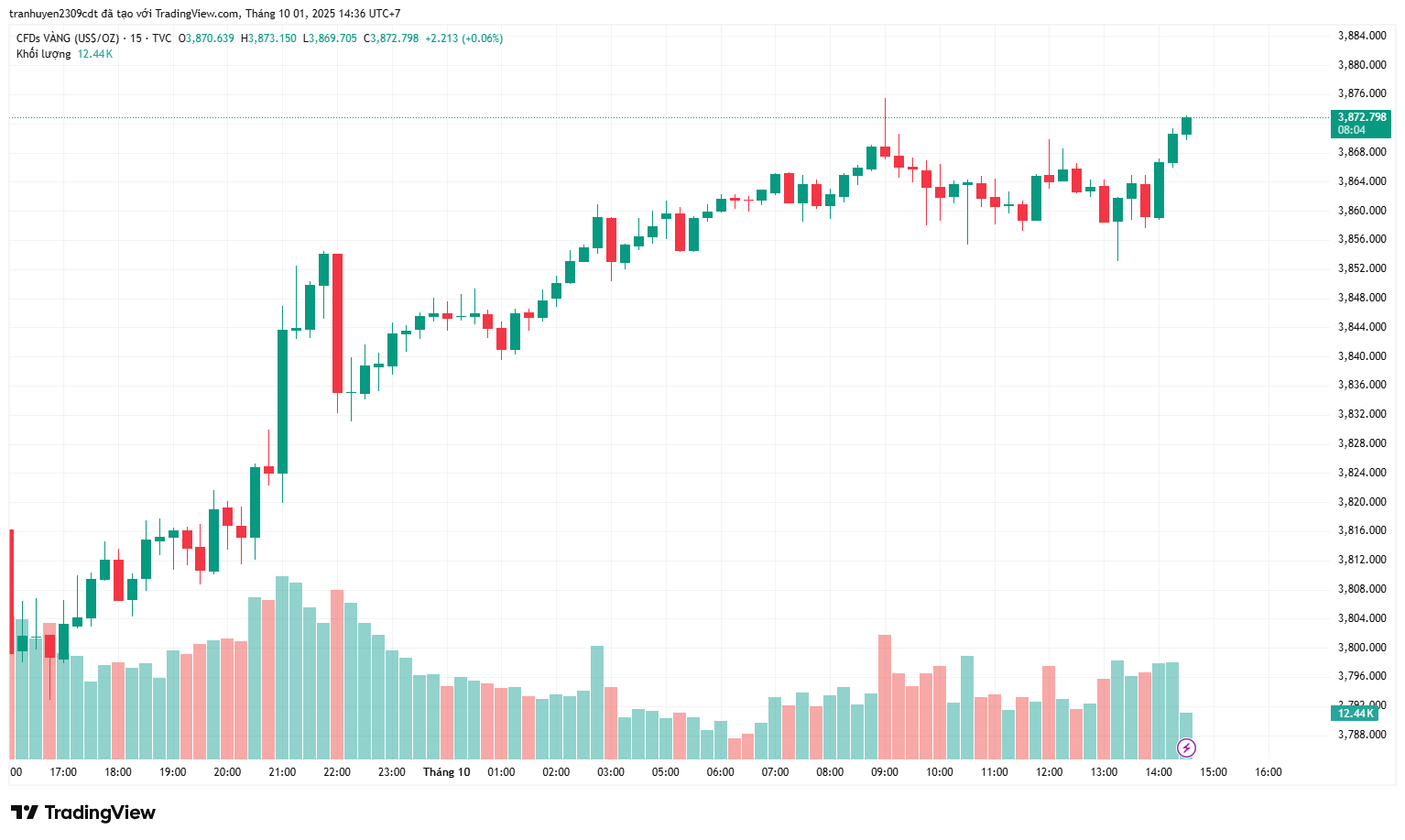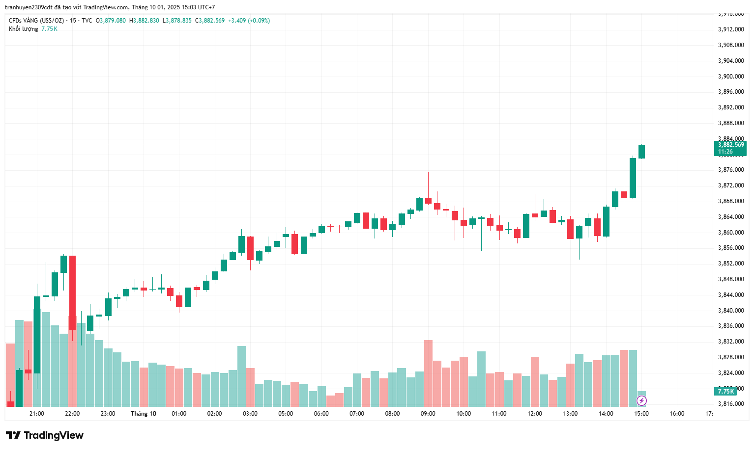 Thật khó để kìm hãm đà tăng của vàng. Kim loại quý này một lần nữa chứng kiến dòng tiền mua vào khi giá giảm trong phiên hôm qua, sau khi có thời điểm rơi xuống dưới 3,800 USD. Lực mua xuất hiện trong phiên Mỹ, và hiện tại giá vàng đang được giữ vững gần mức đỉnh khi bước sang ngày mới.