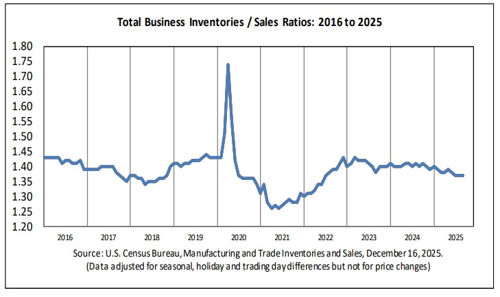 Dữ liệu về hàng tồn kho kinh doanh và hàng tồn kho bán lẻ (trừ ô tô) của Mỹ trong tháng 9 năm 2025 (dữ liệu cũ) cho thấy: