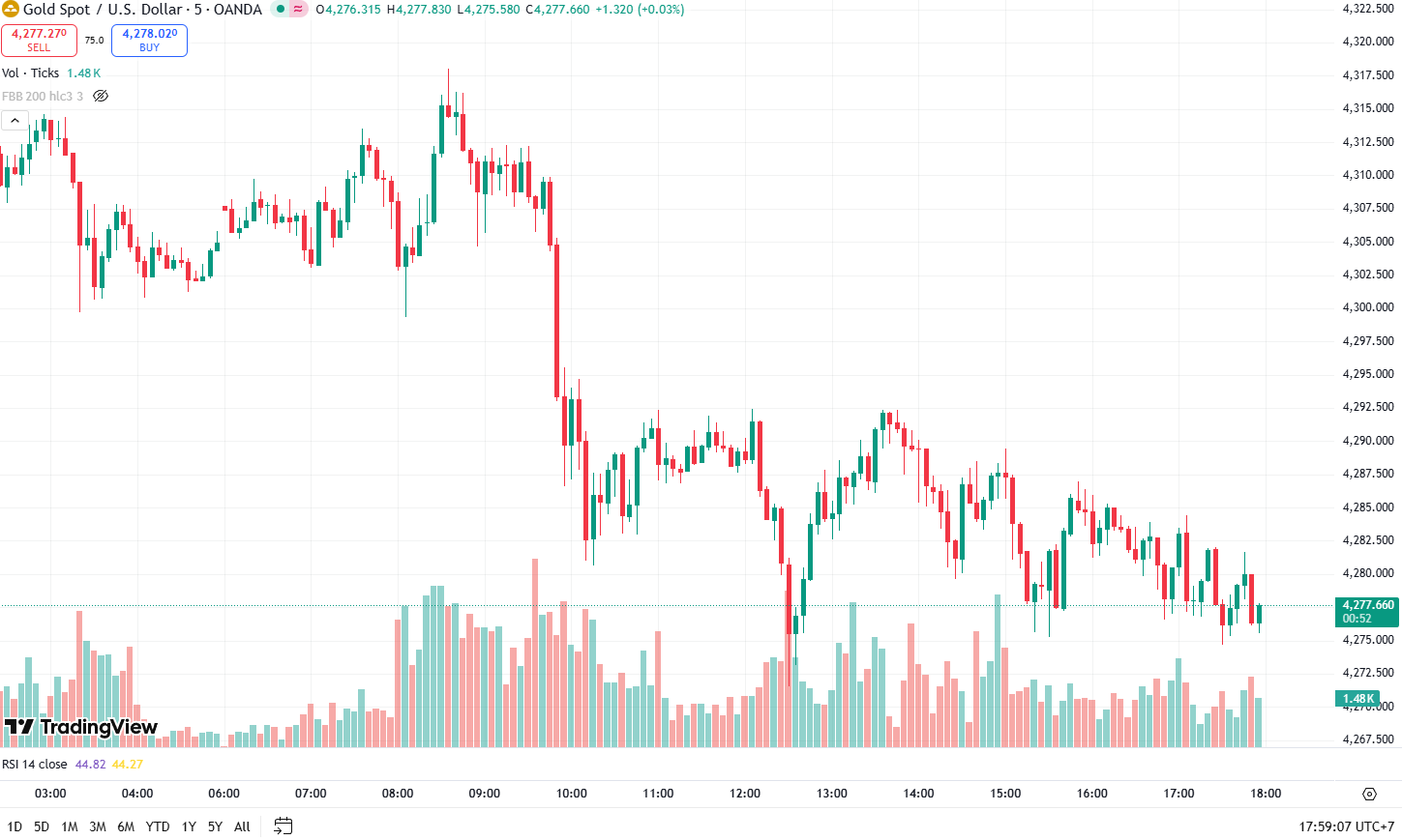 Giá vàng đi ngang quanh 4,280 USD/oz trong ngày hôm nay, chờ đợi báo cáo NFP Mỹ.