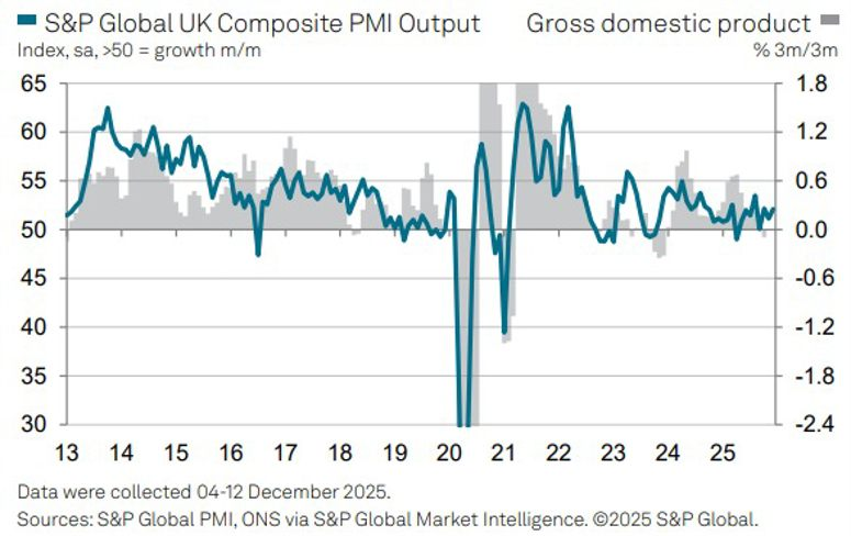 Dữ liệu PMI sơ bộ tháng 12 cho thấy đà tăng trưởng kinh tế bùng nổ gần đây đang mất dần động lực. Mặc dù dữ liệu khảo sát chỉ ra mức tăng trưởng GDP quý 4 đạt khoảng 2.5% (đã quy đổi theo năm), nhưng tốc độ tăng trưởng hiện đã chậm lại trong hai tháng liên tiếp. Với việc tăng trưởng doanh số bán hàng mới suy yếu đặc biệt mạnh ngay trước thềm kỳ nghỉ lễ, hoạt động kinh tế có thể sẽ còn ảm đạm hơn nữa khi chúng ta bước sang năm 2026.